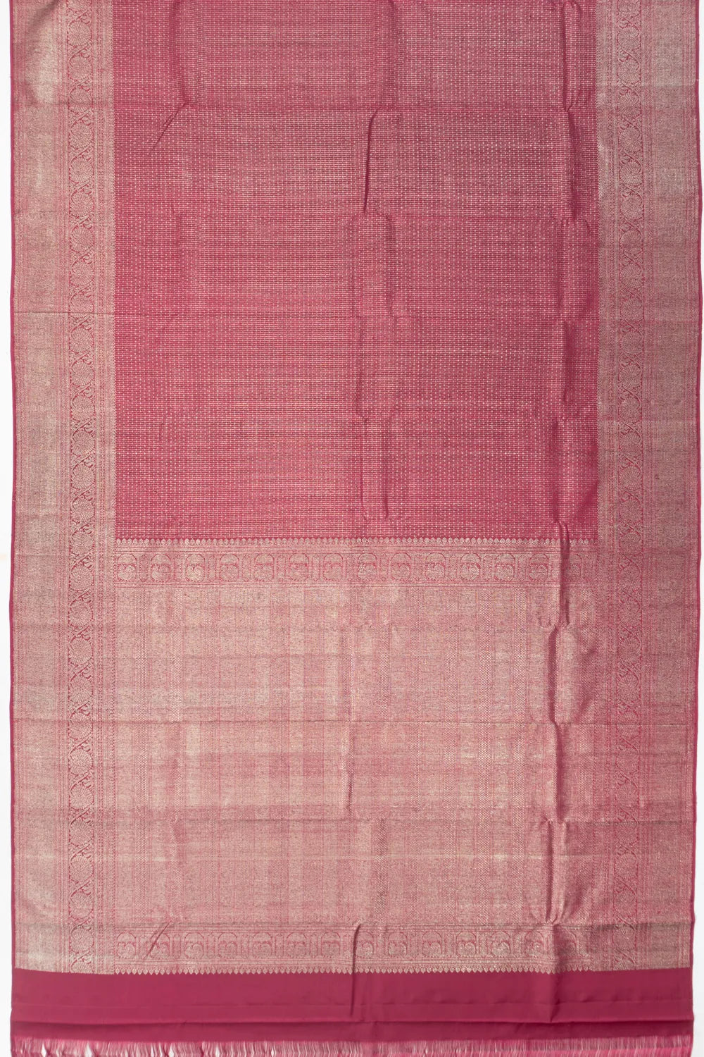 Self antique zari geometrical brocade pallu adorned with a graceful series of peacock motifs, enhancing regal appeal.