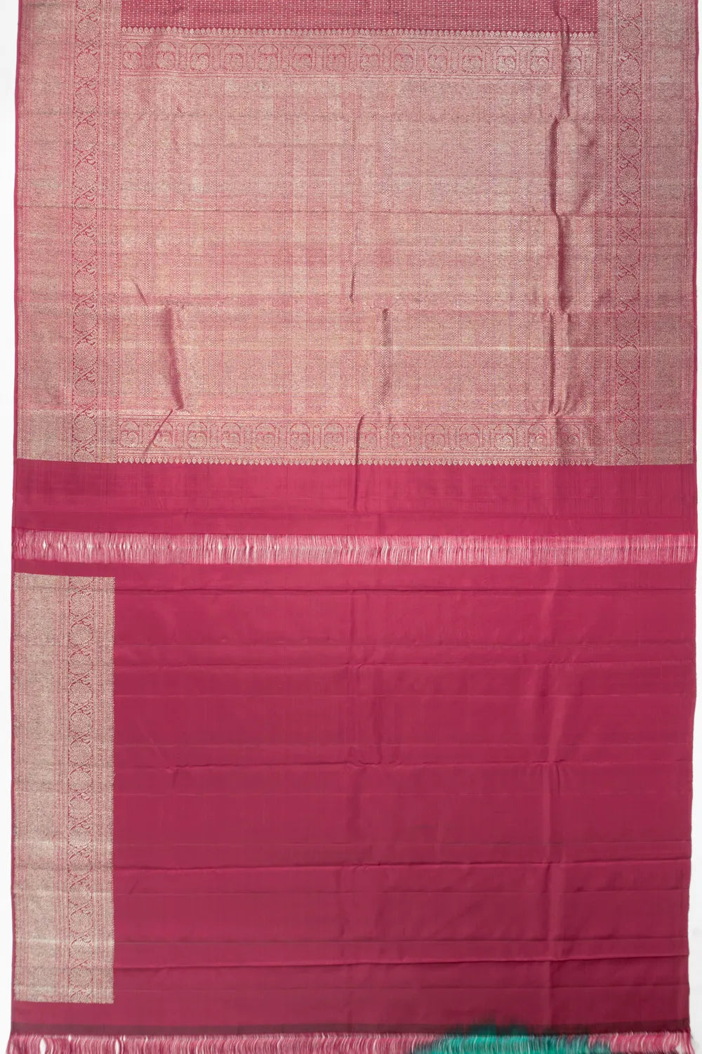 Antique Zari Kanchipuram Silk Half And Half Lines And Brocade Maroon Saree