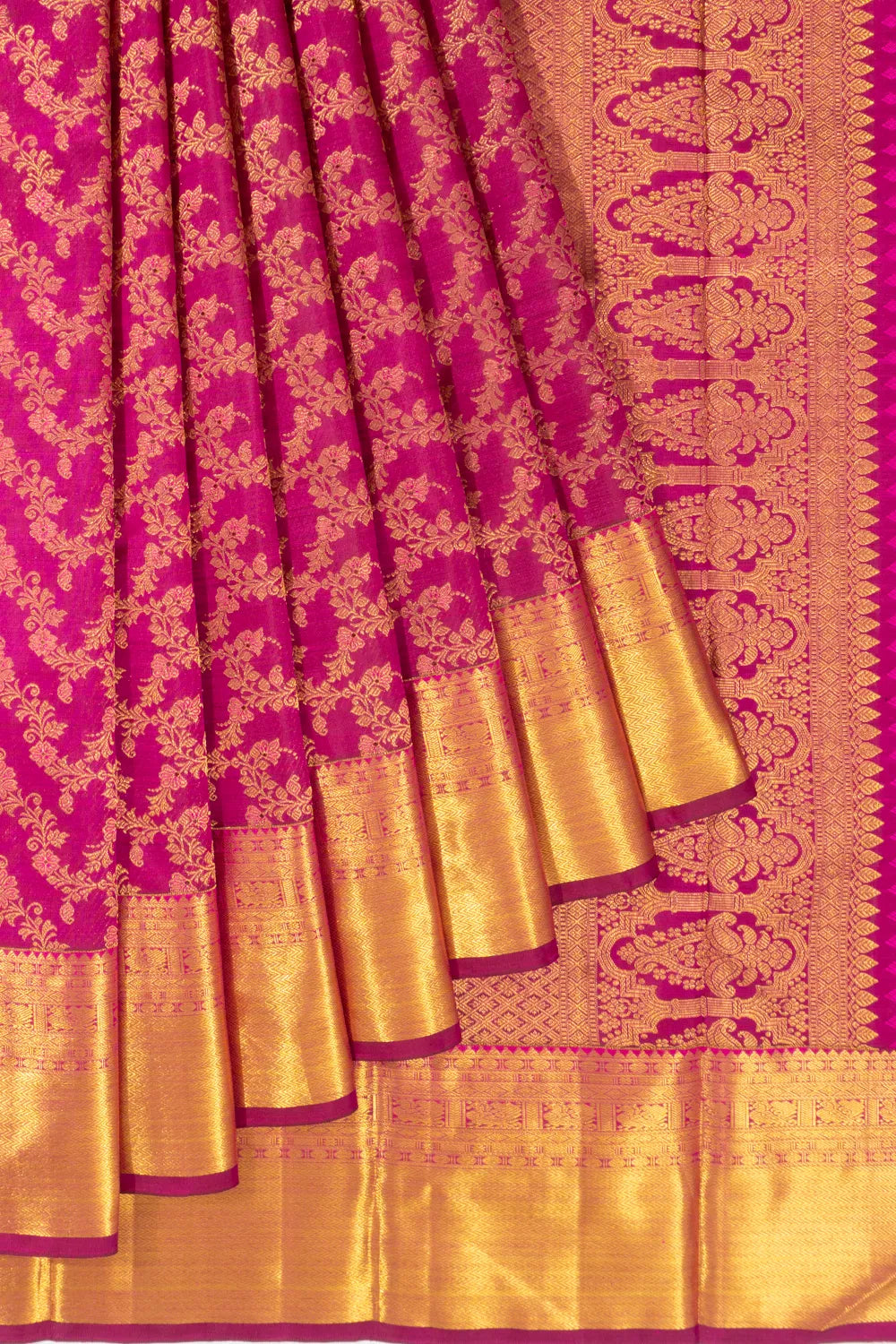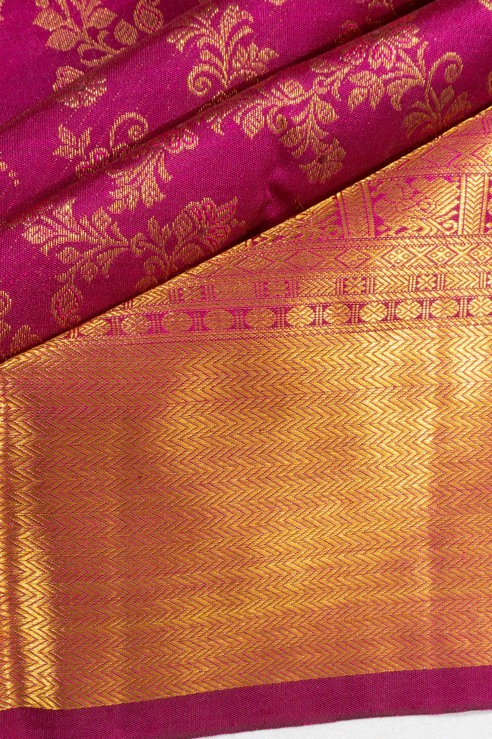Grand self gold zari brocade pallu beautifully decorated with floral patterns.