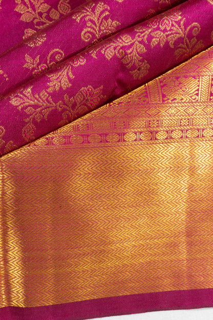 Rich purple base adorned with exquisite gold zari floral brocade, offering a luxurious and traditional appeal.