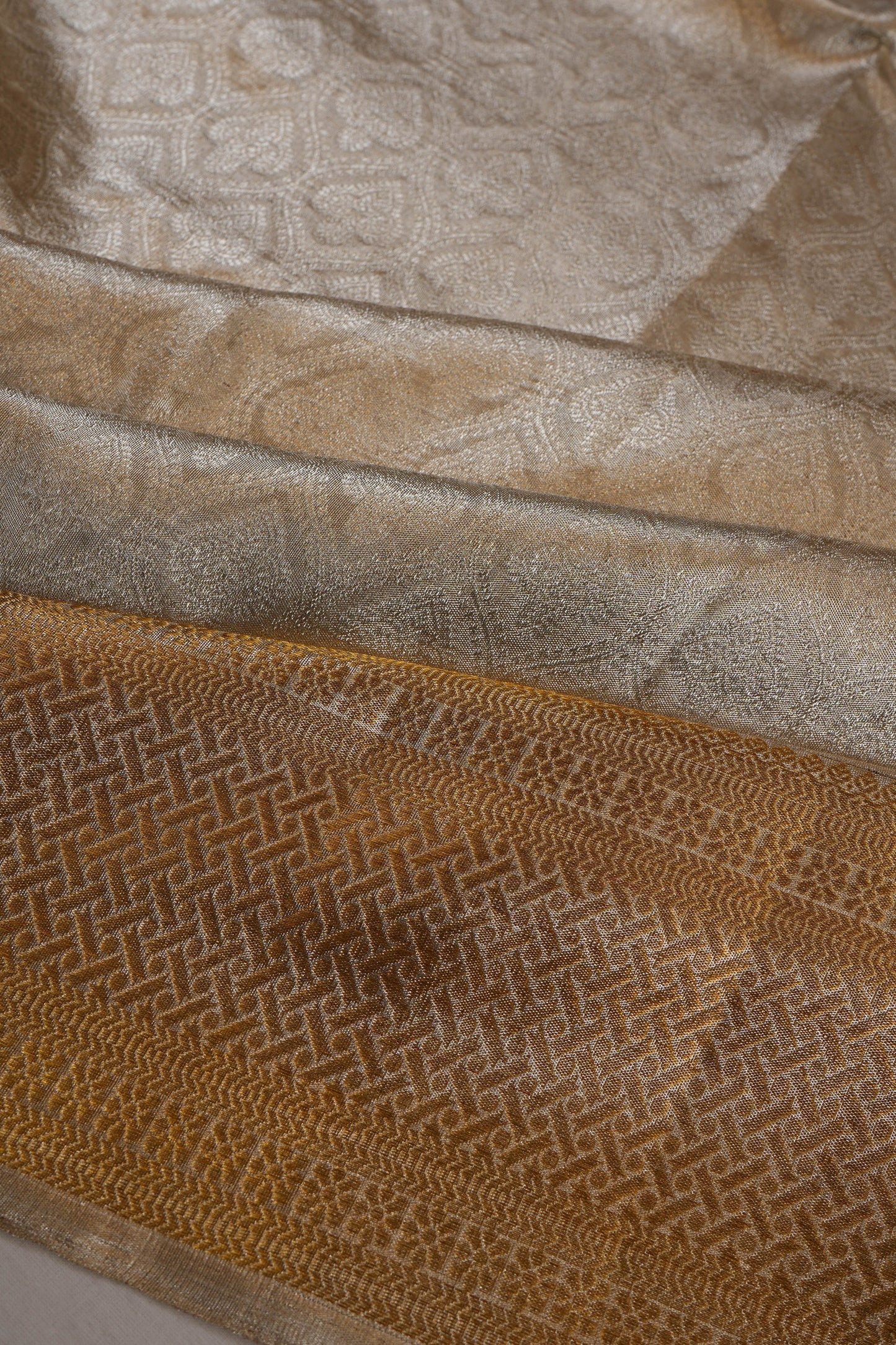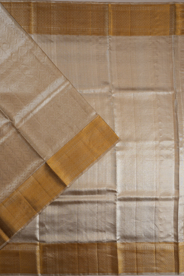 Kanchipuram Silk Tissue Brocade Silver Saree