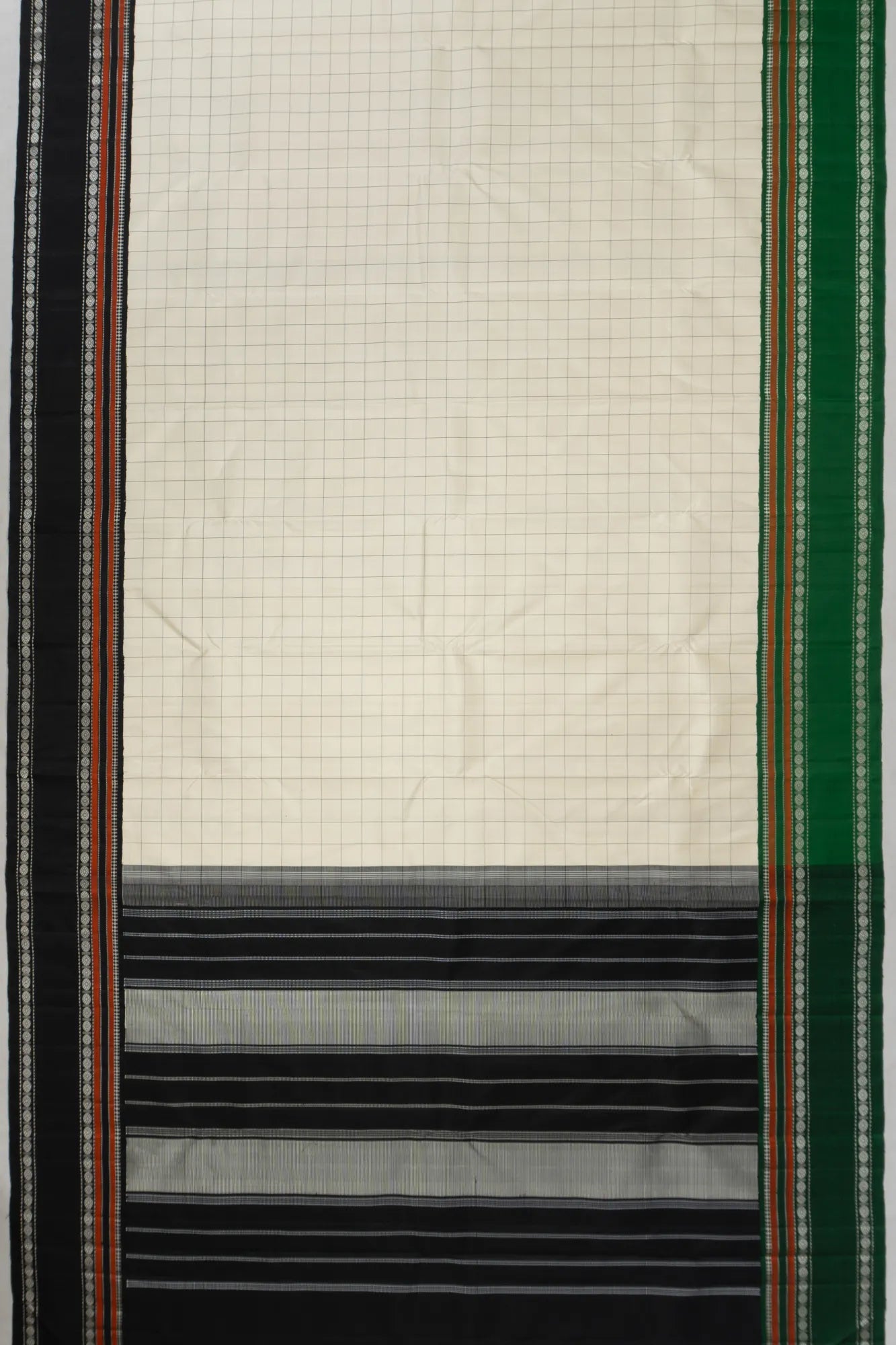Kanchipuram Silk Checks Off White Saree With Ganga Jamuna Border