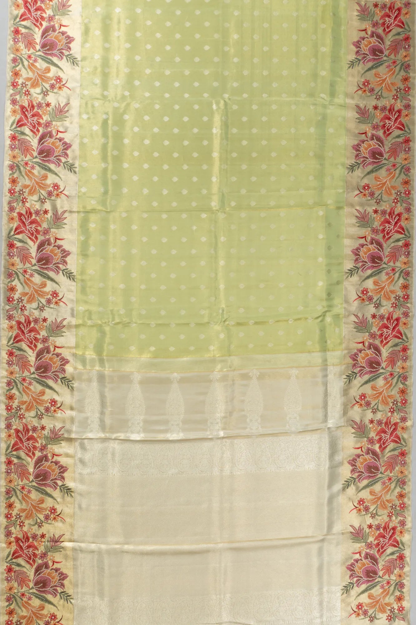 Kanchipuram Silk Tissue Butta Pastel Green Saree With Embroidery Border