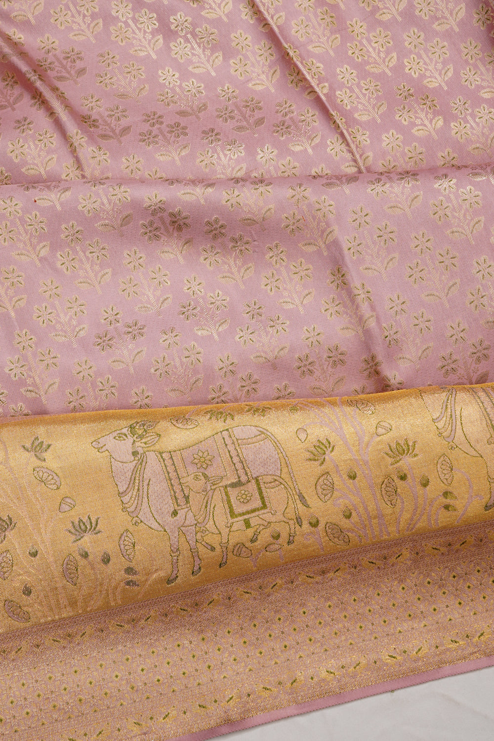 The pallu is designed to captivate, woven meticulously with gold zari that adds a touch of grandeur to this exquisite piece