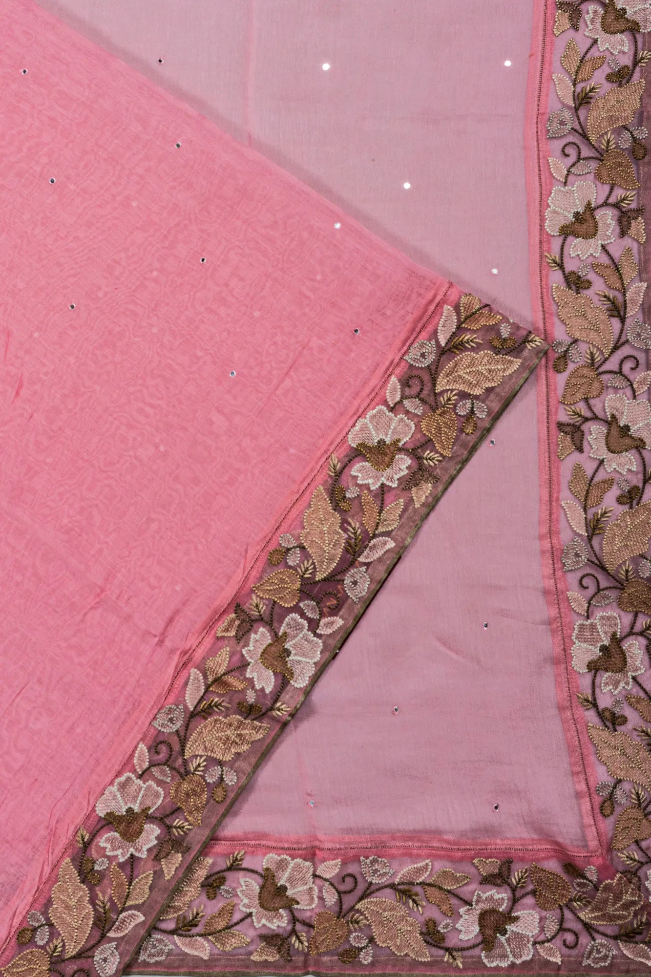 Mul Cotton Mirror Butta Pink Saree With Embroidery Border