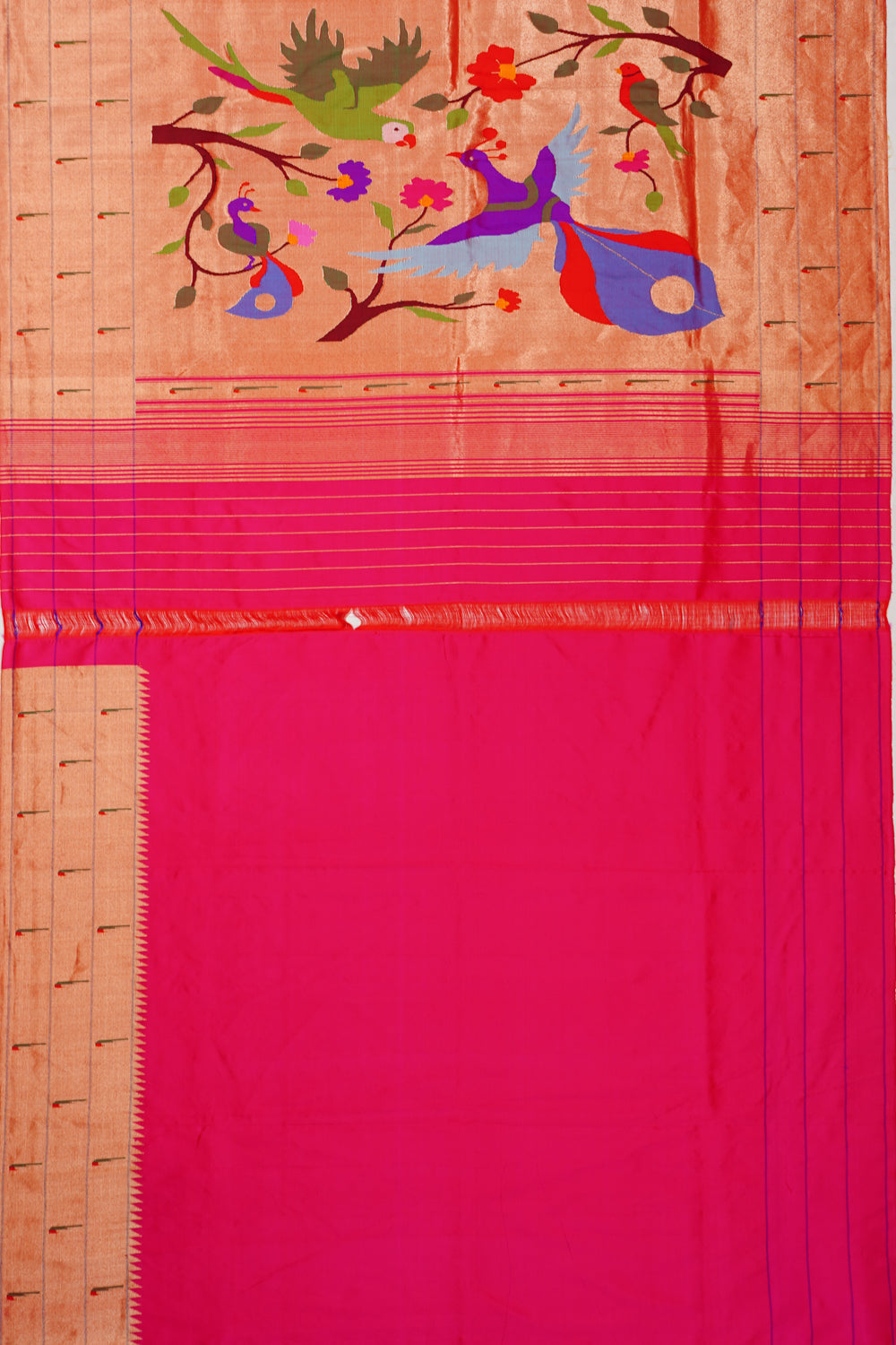 Paithani Silk Butta Pink Saree With Triple Muniya Border