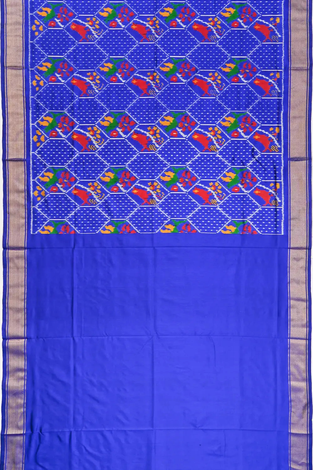 The saree's body is adorned with exquisite floral ikat patterns and delicate bird motifs, creating a mesmerizing tapestry of heritage-rich artistry