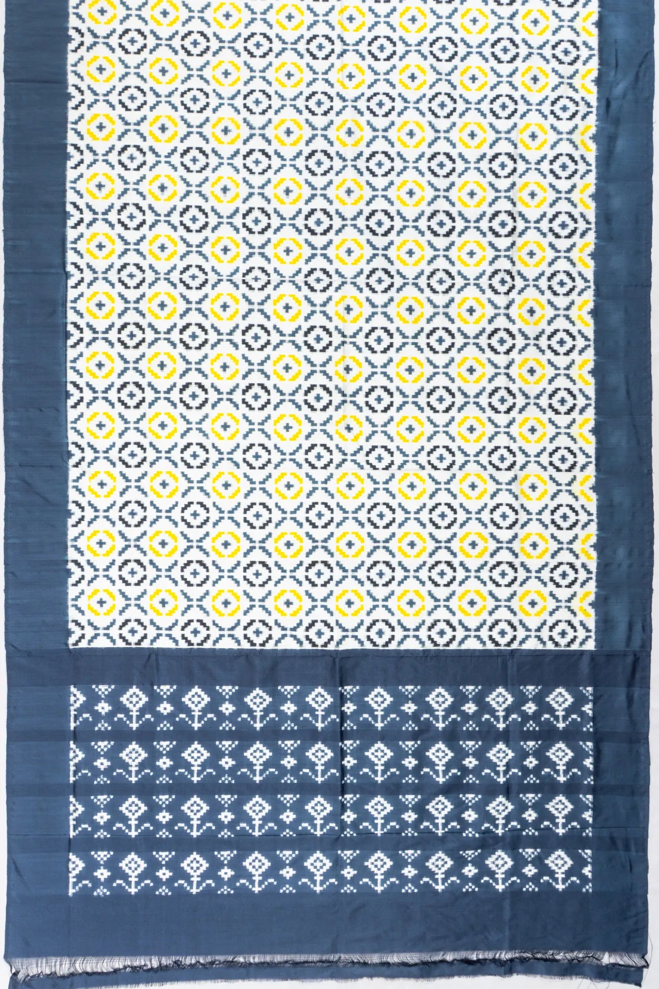 Pristine white base adorned with subtle floral Ikat patterns, lending a soft and elegant appeal.