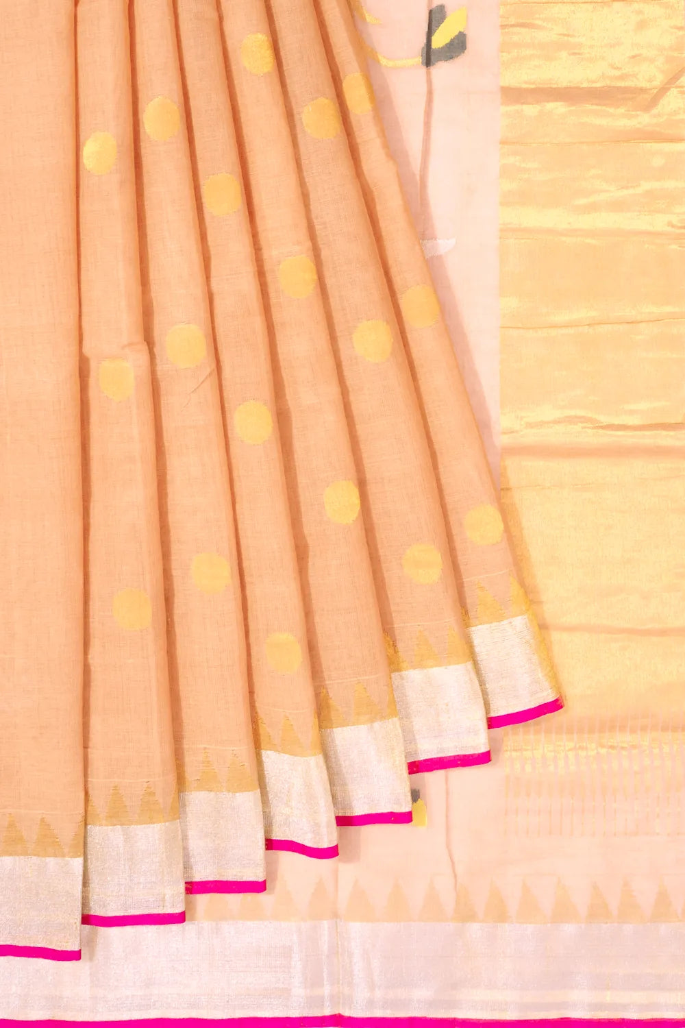 Ponduru Handspun Cotton Jamdani And Polka Dot Butta Pastel Brown Saree