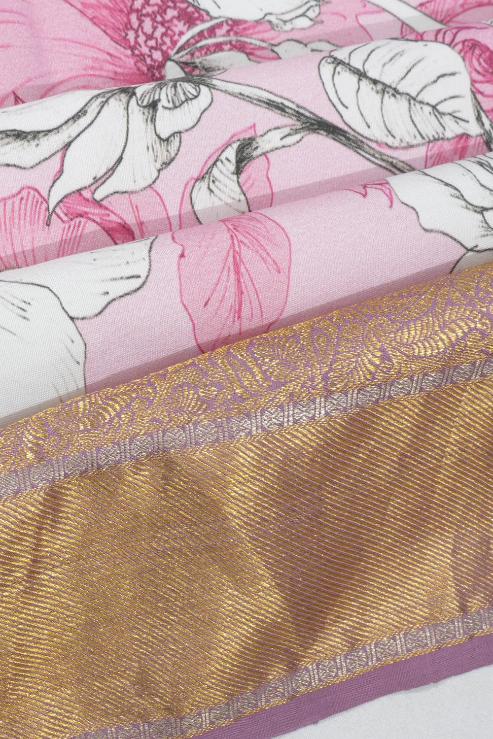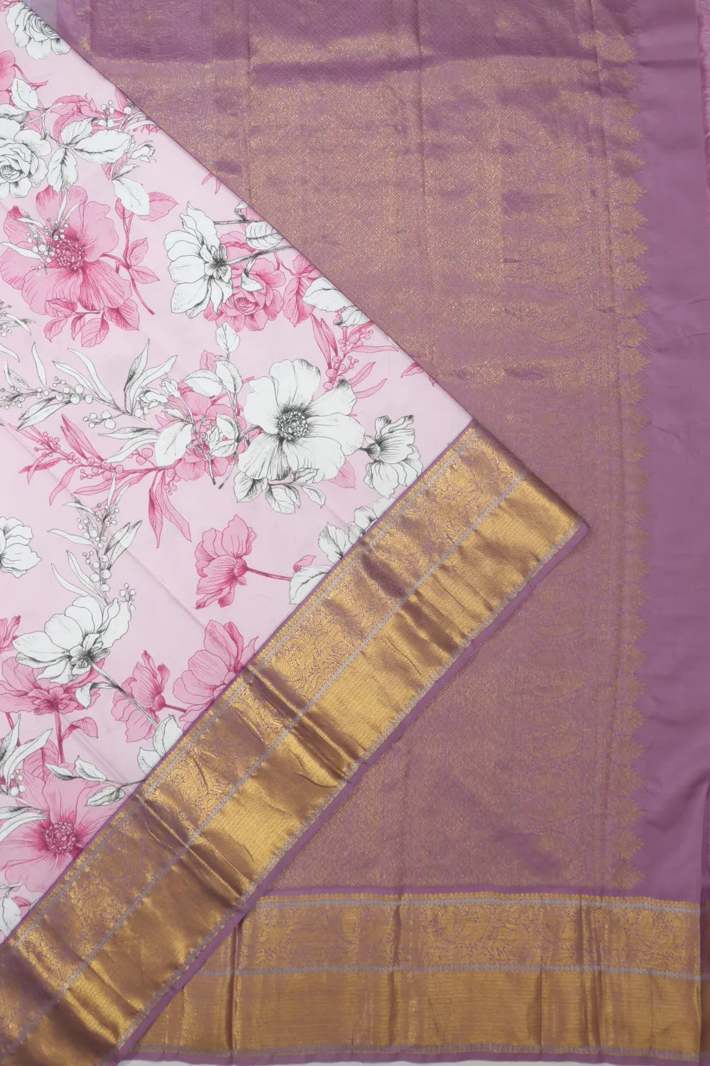 Kanchipuram Silk Floral Printed Baby Pink Saree