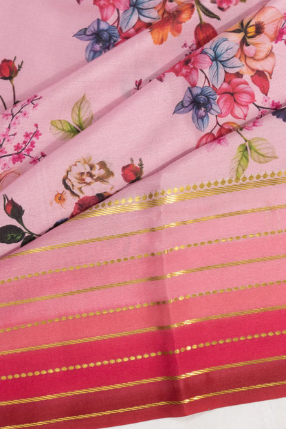 Binny Silk Floral Printed Baby Pink Saree
