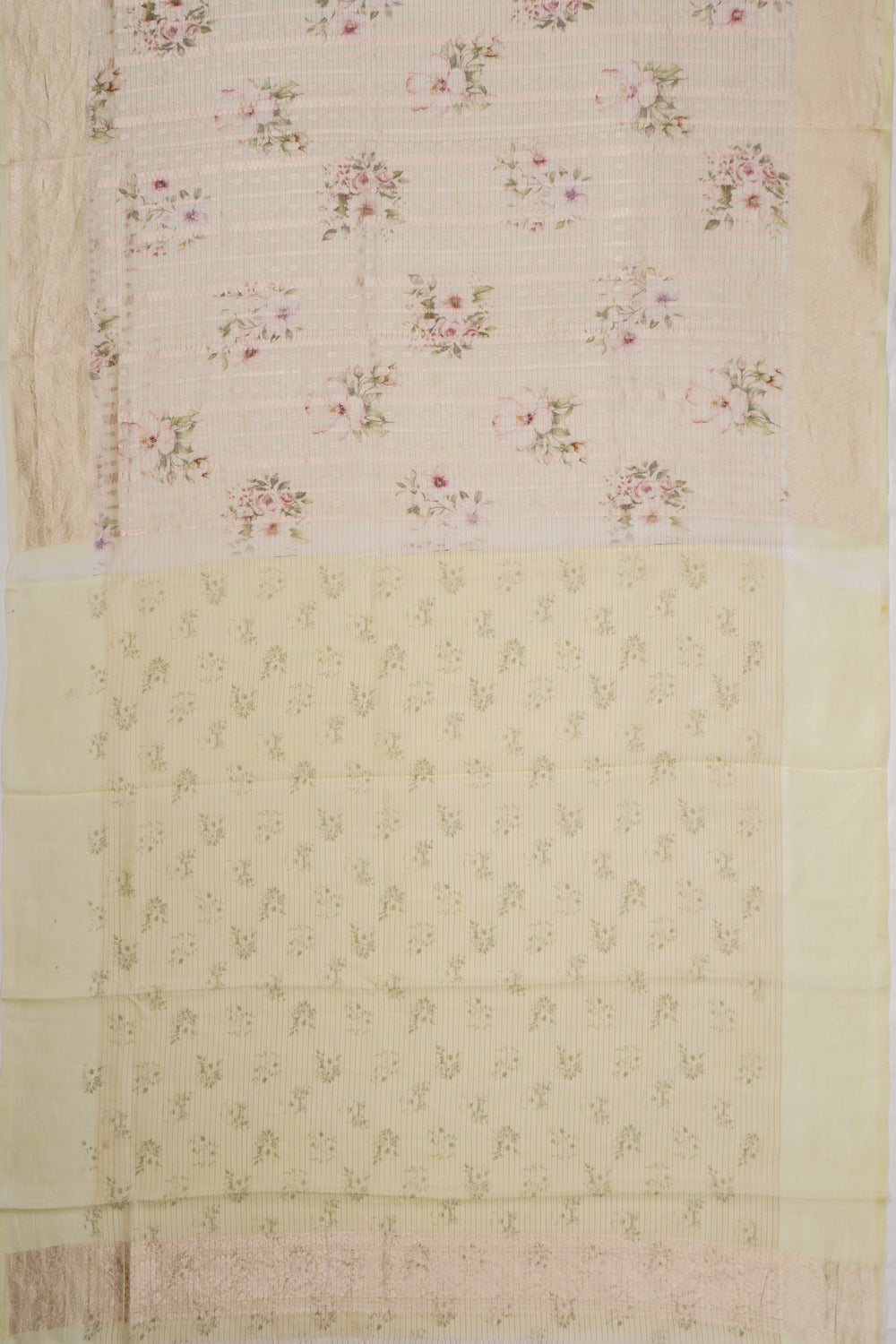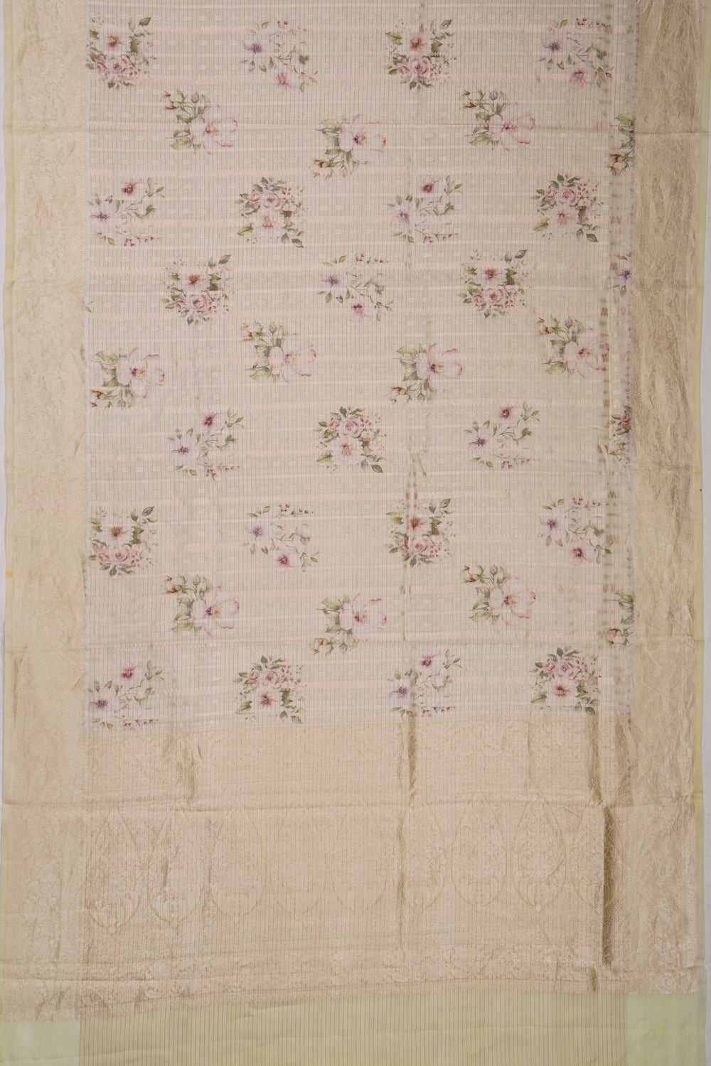 Chanderi Silk Floral Printed Cream Saree