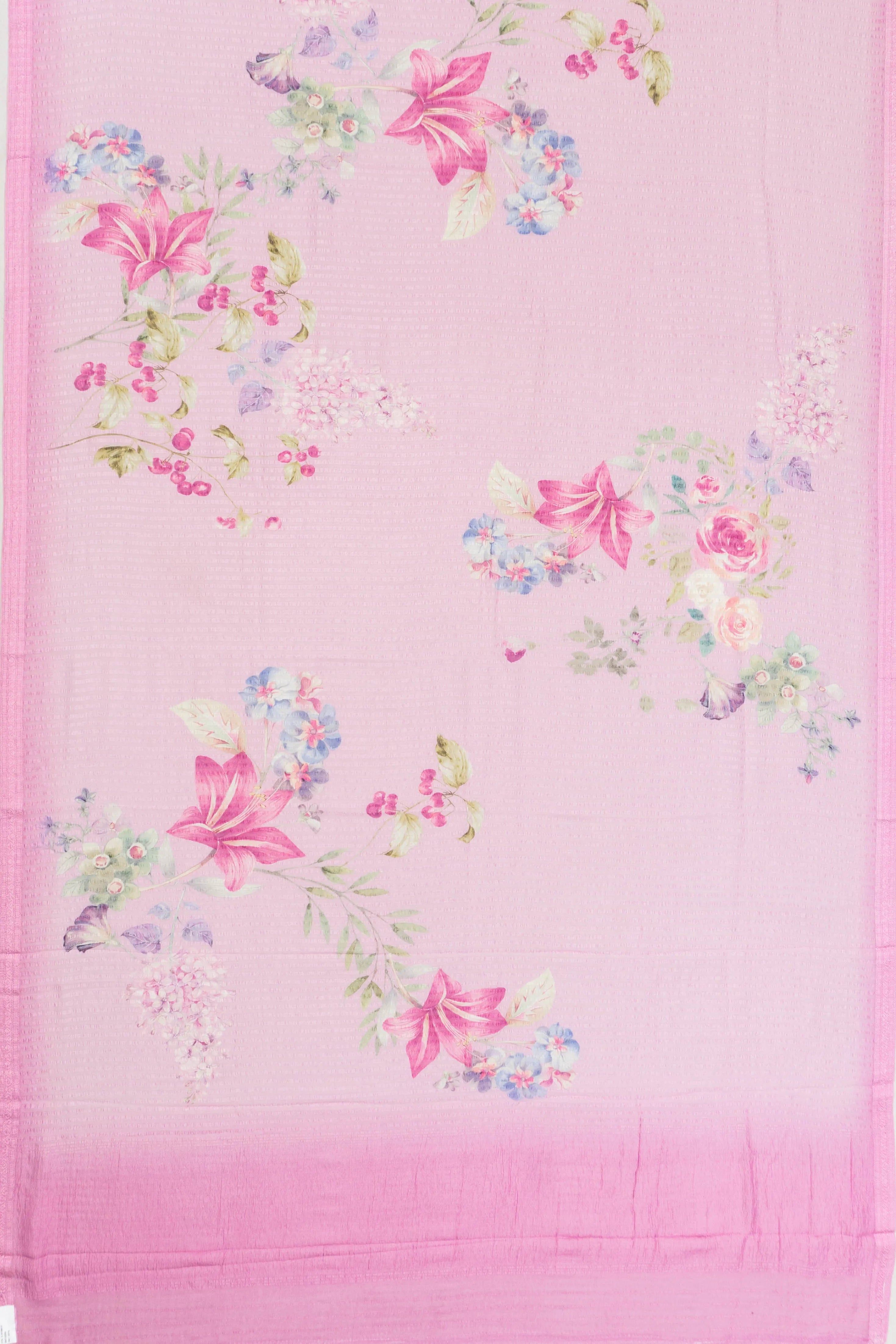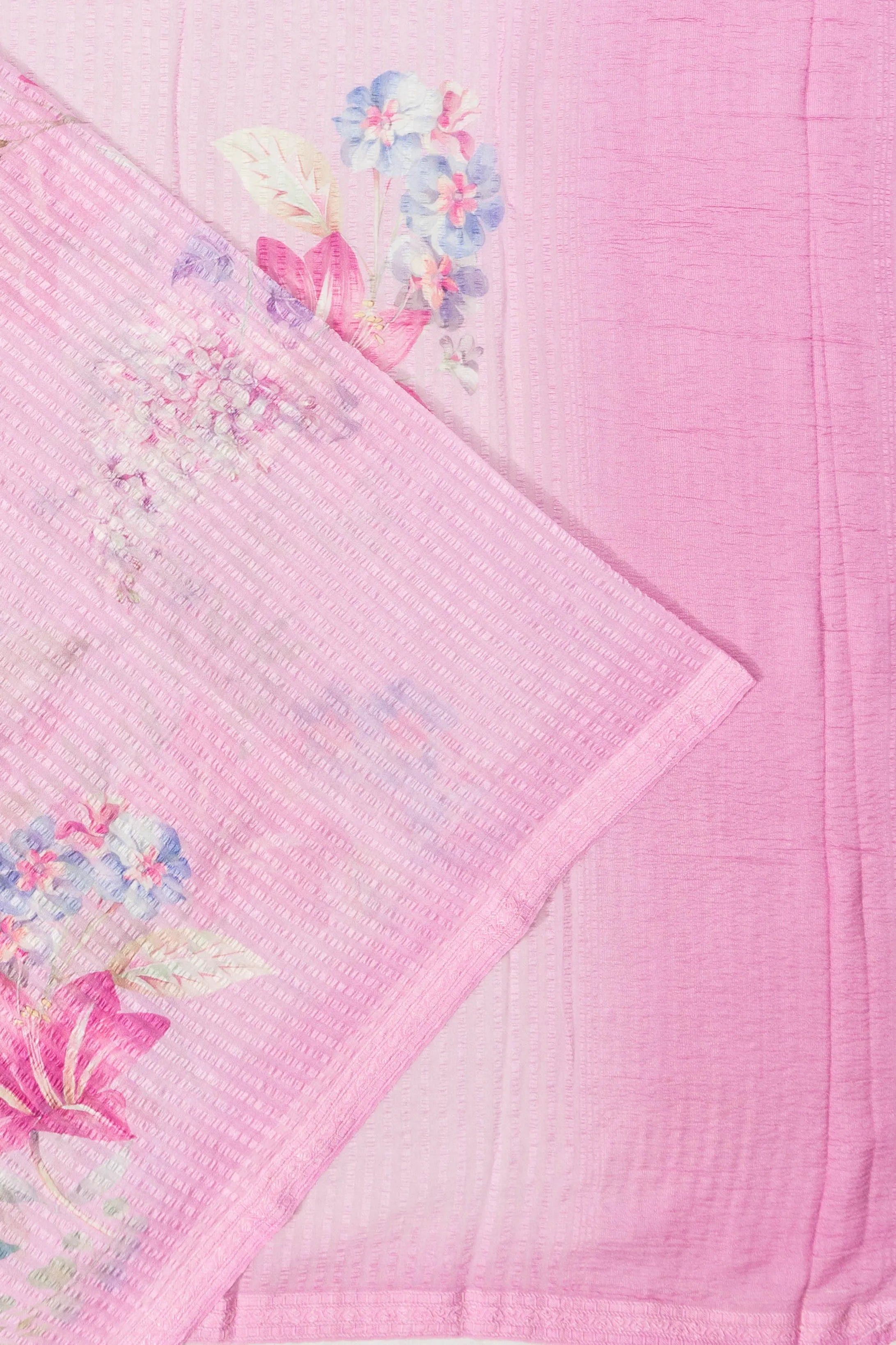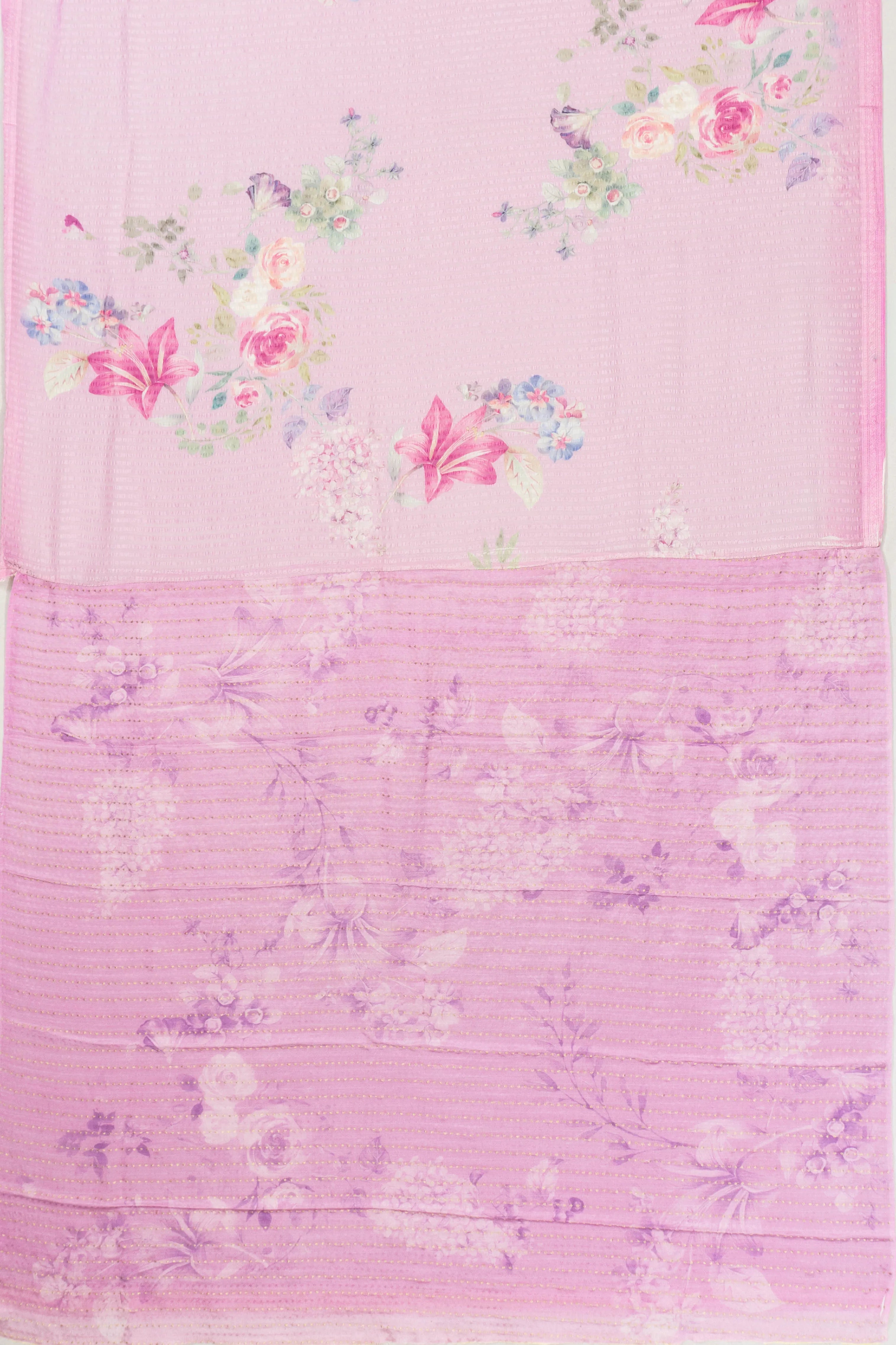 Chiffon Georgette Vertical Lines And Floral Printed Baby Pink Saree
