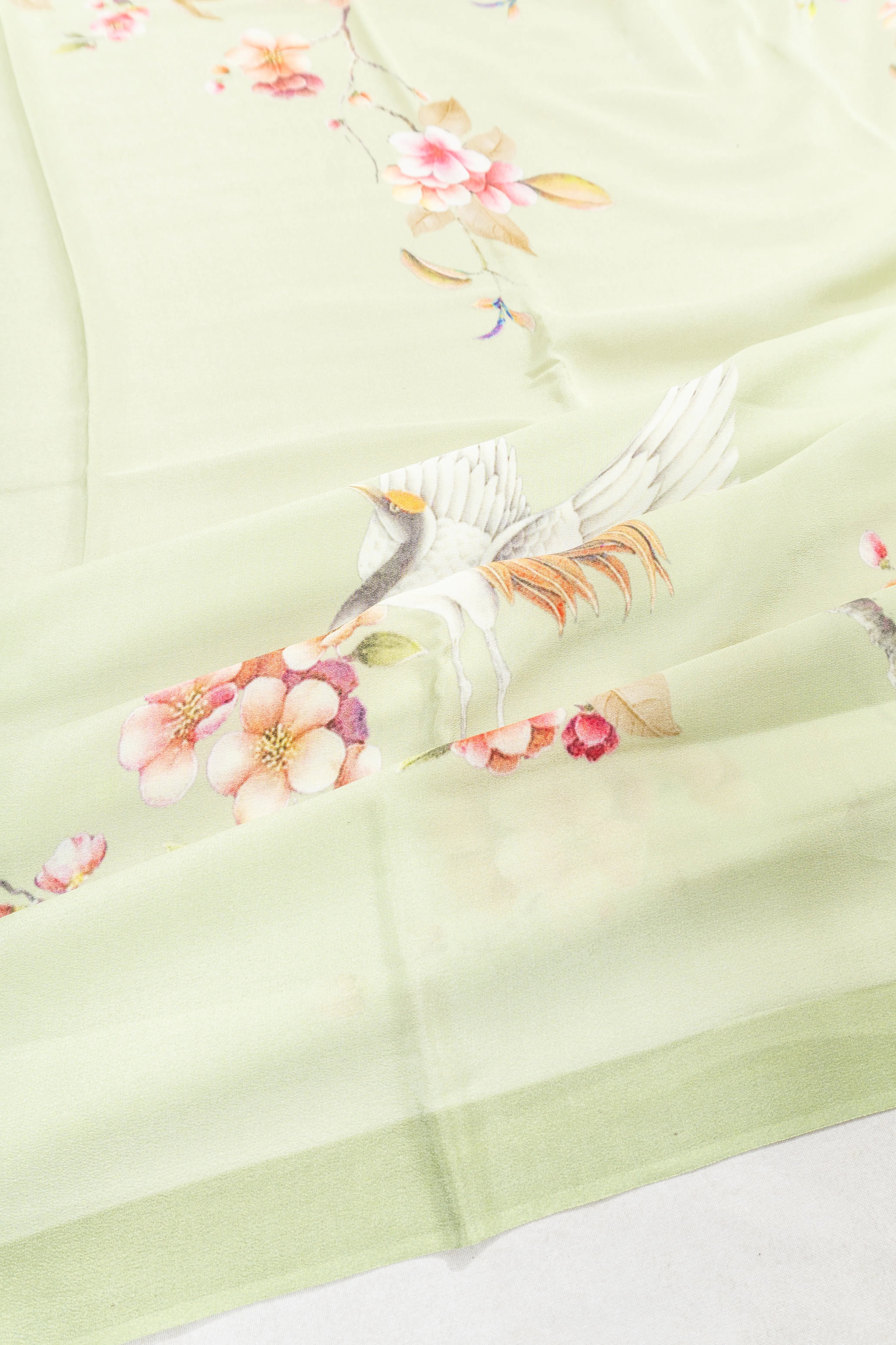 Crepe Printed Pista Green Saree