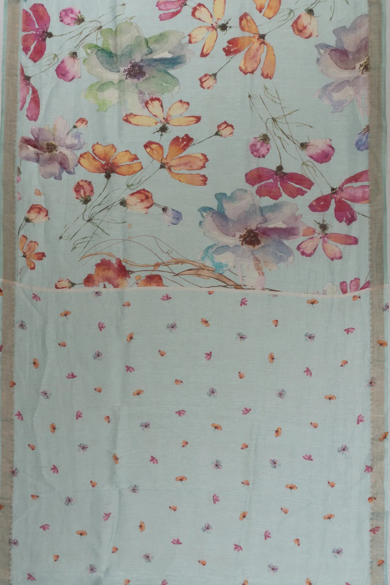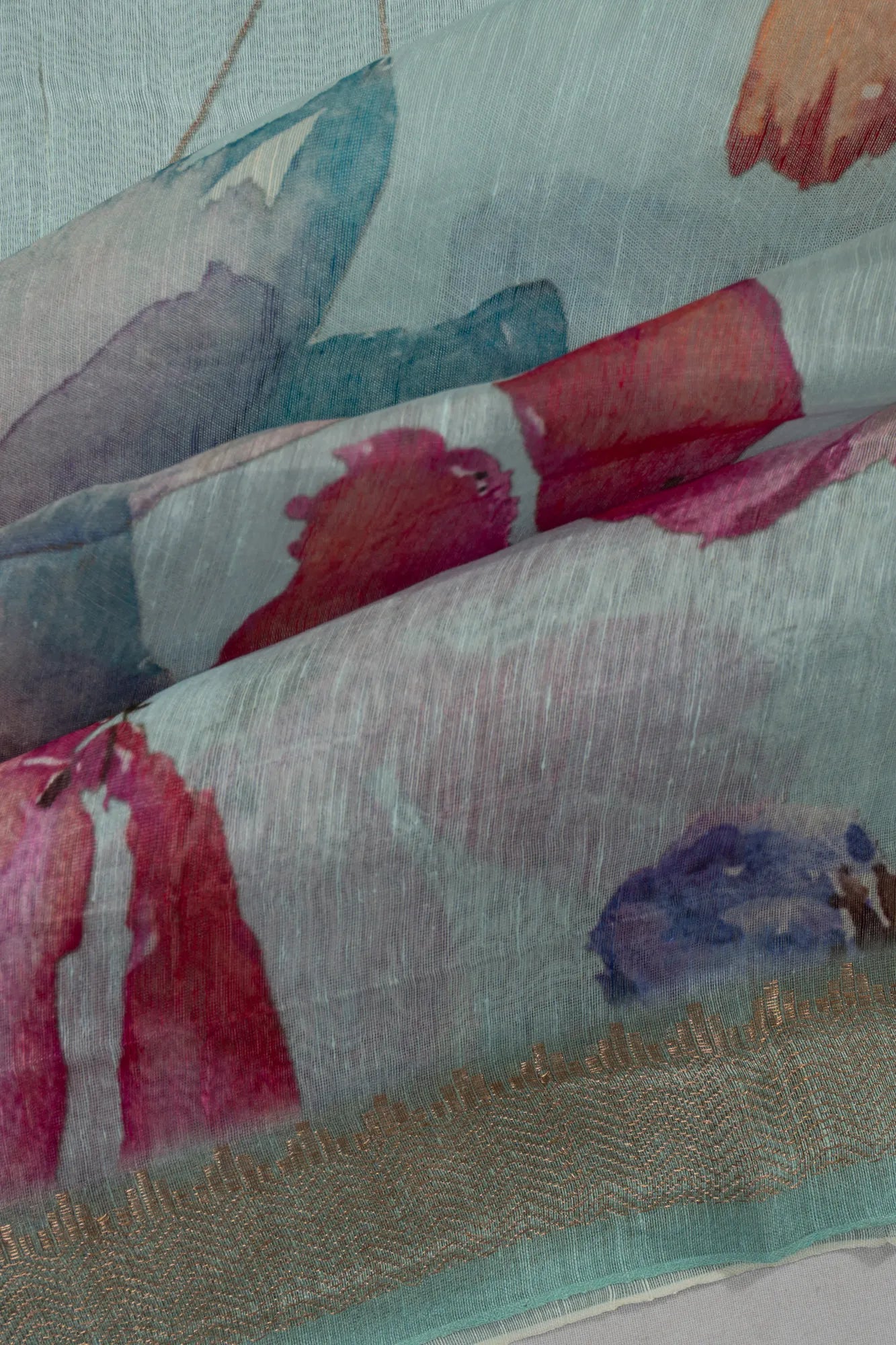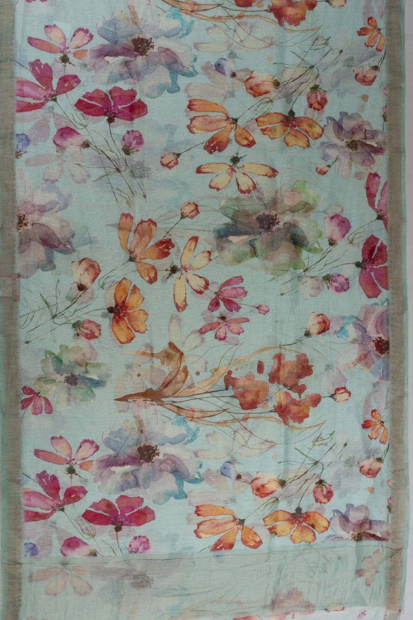 Linen Floral Printed Sea Green Saree