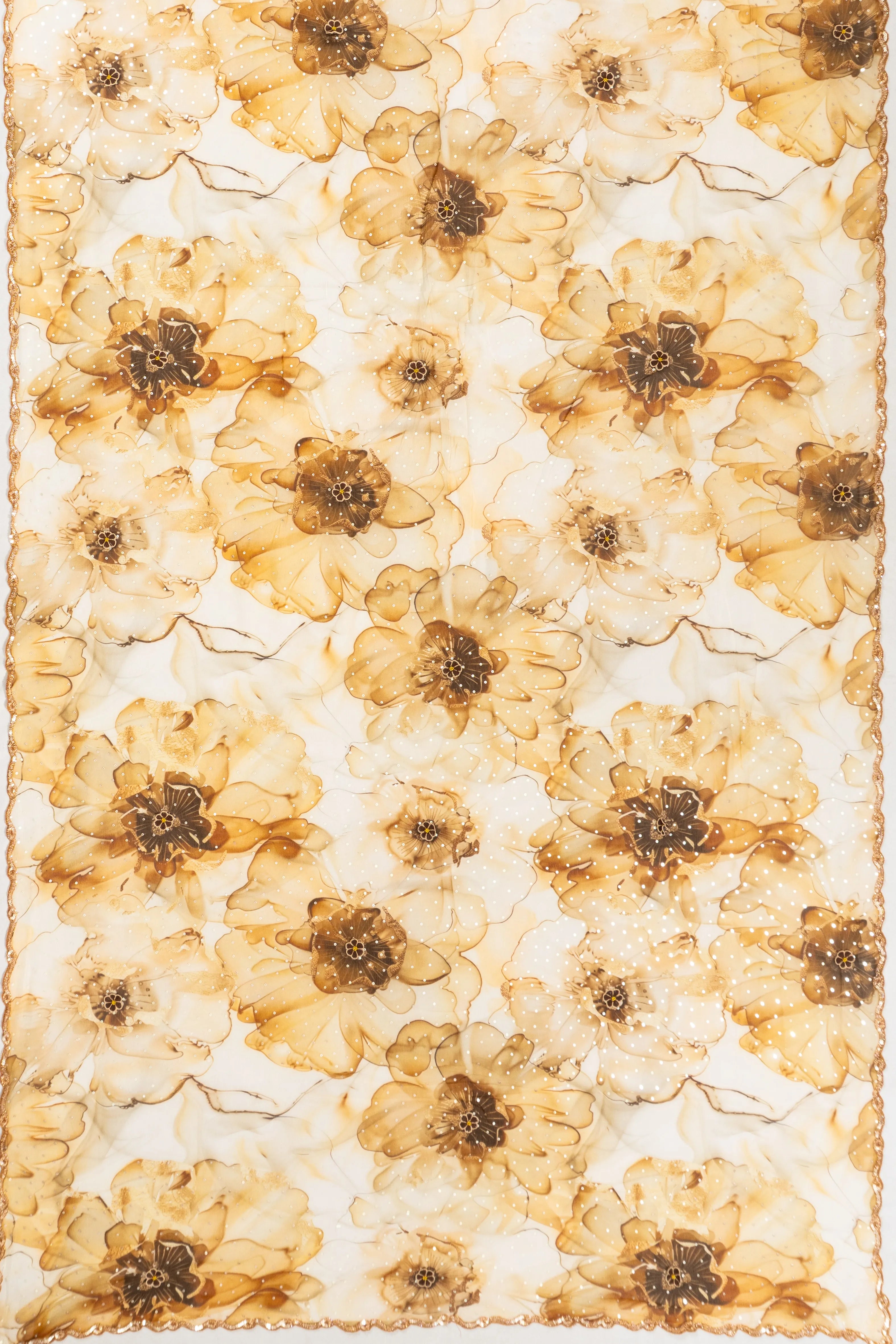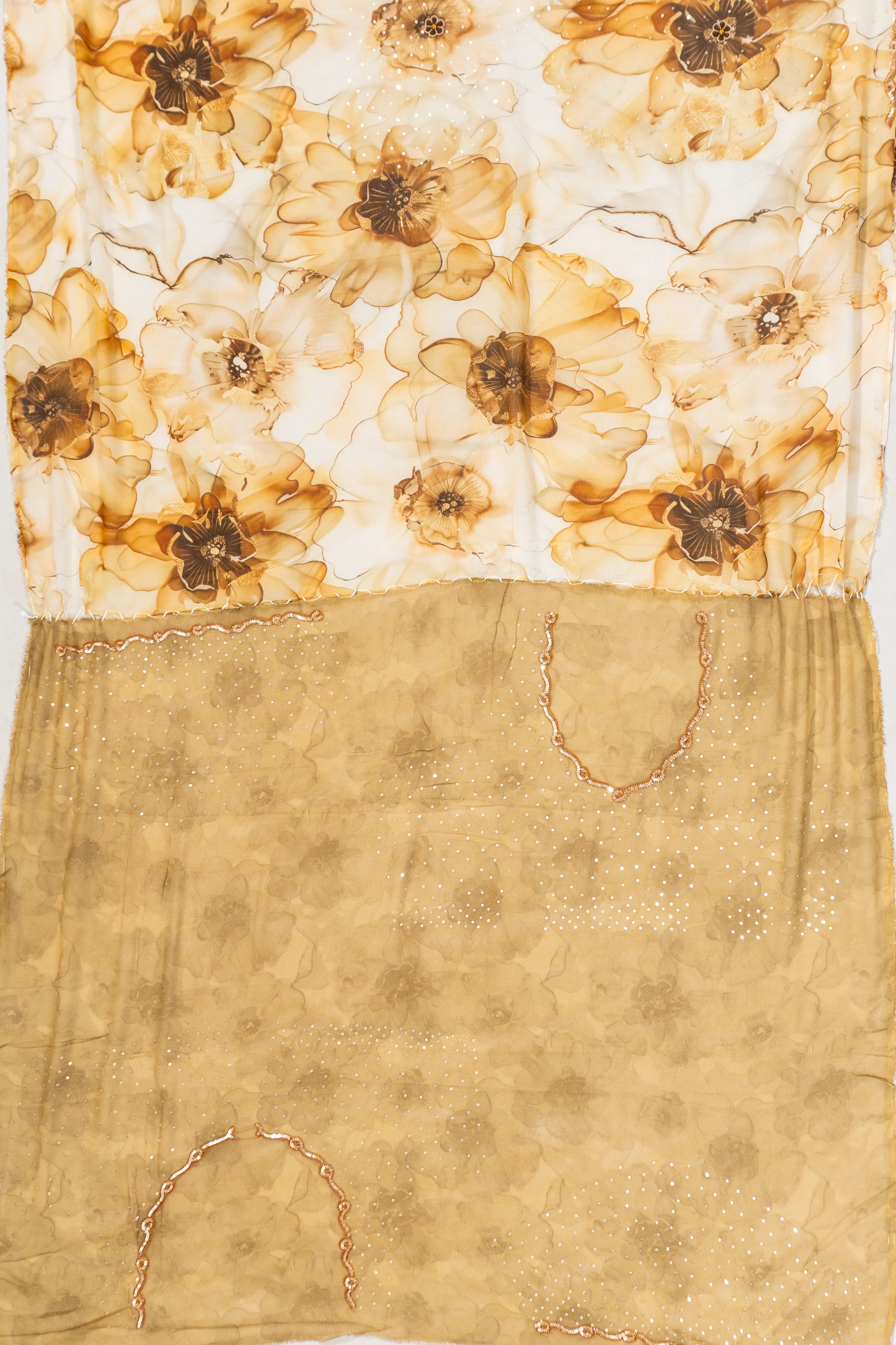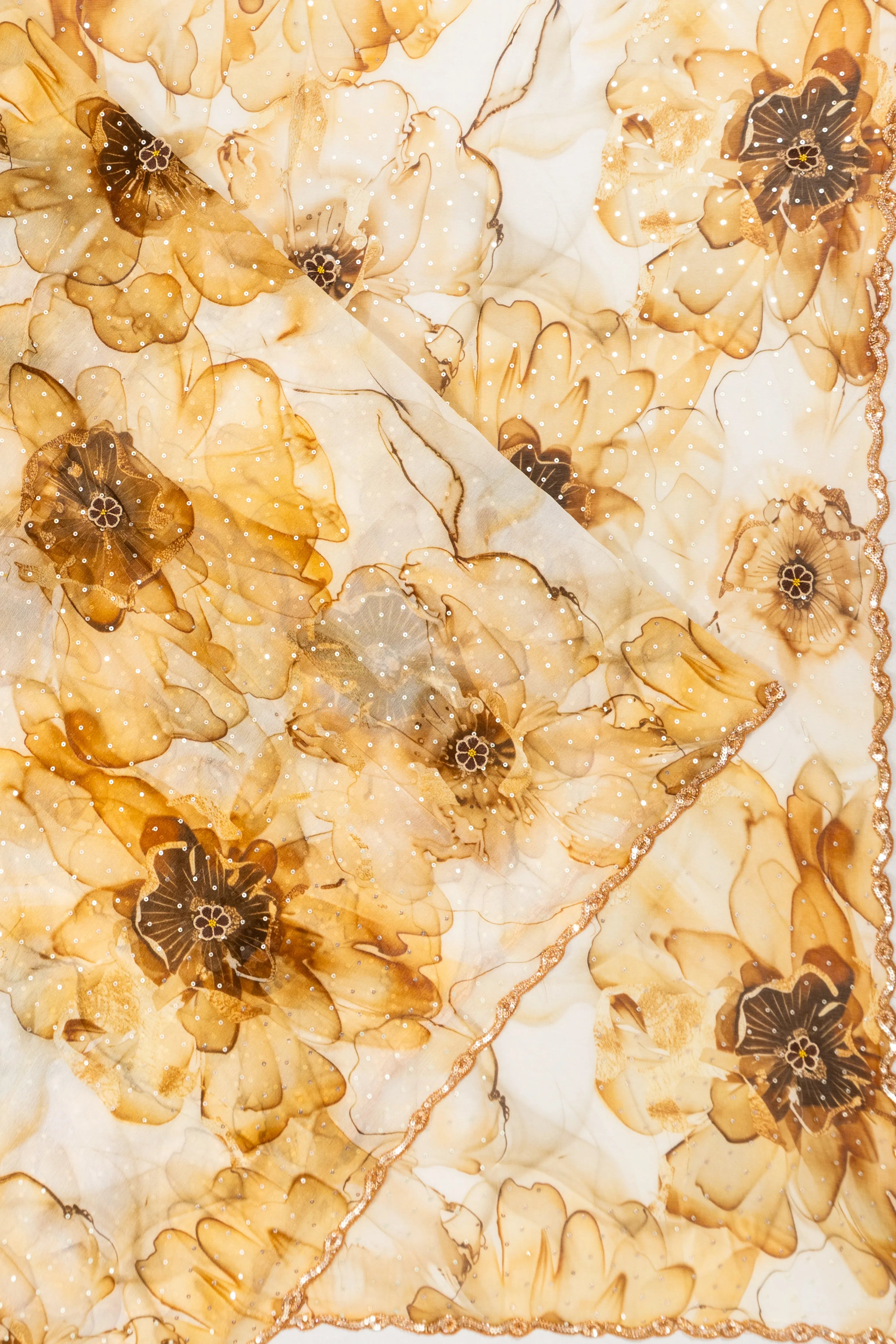 Organza Printed Sequins Yellow Saree
