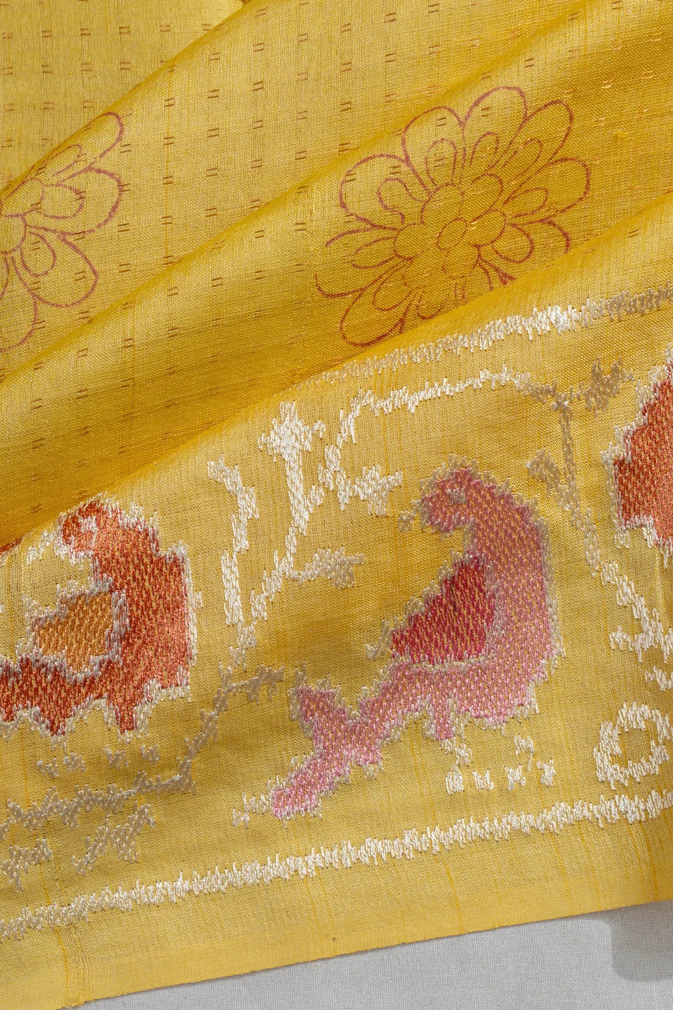 Its pallu gracefully drapes, offering a harmonious continuation of the saree's rich design ethos
