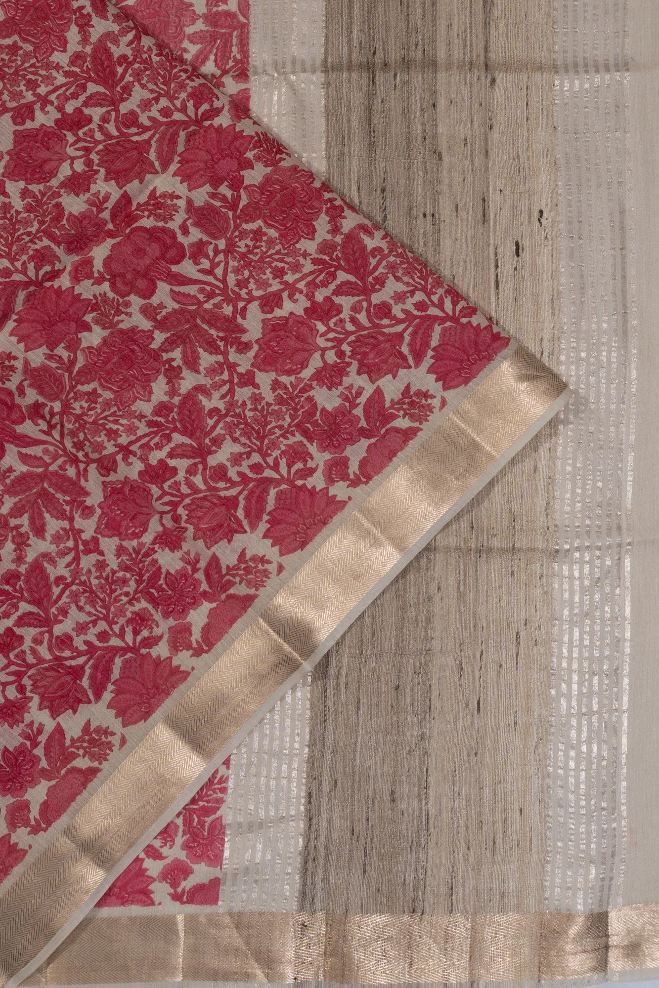 Tussar Floral Printed Pink Saree