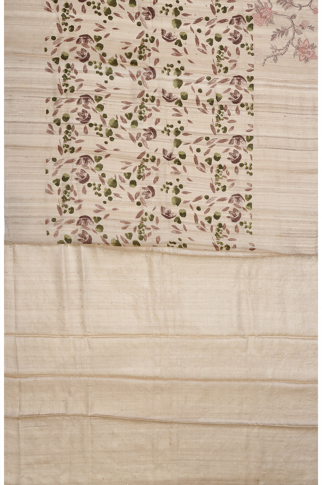 Tussar Printed Cream Saree With Embroidery Border