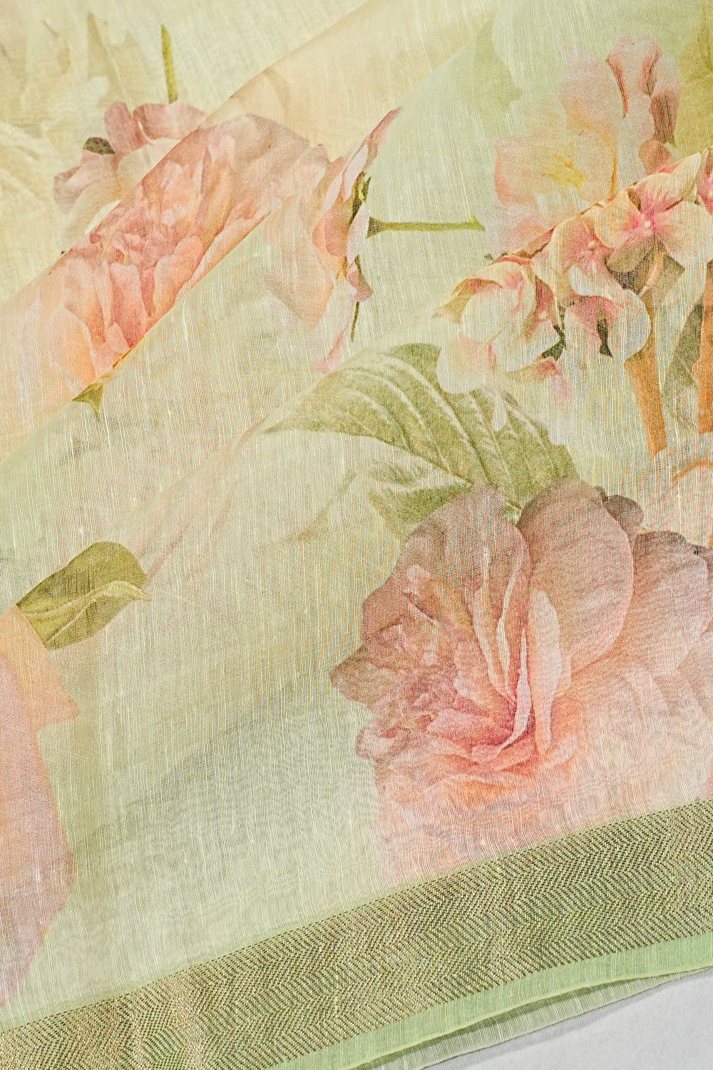 Linen sarees are woven with fine and intricate work of gold and silver zari threads. Generally, zari work is done on rich fabric like silk, but to meet the demand of current trends at an affordable price you can find linen gold and silver zari on printed sarees online.