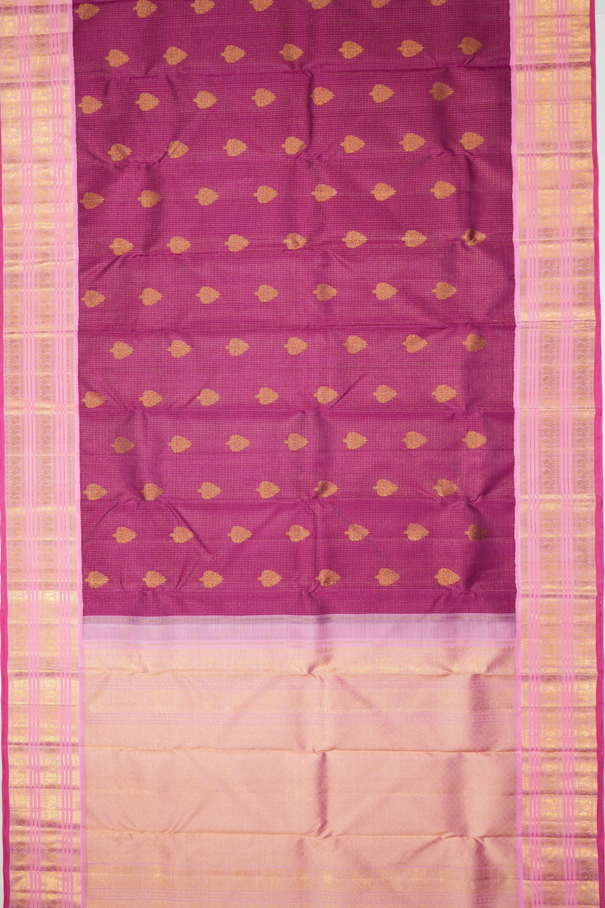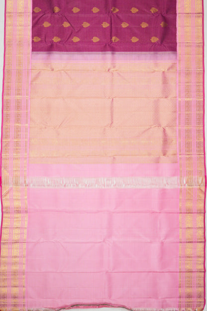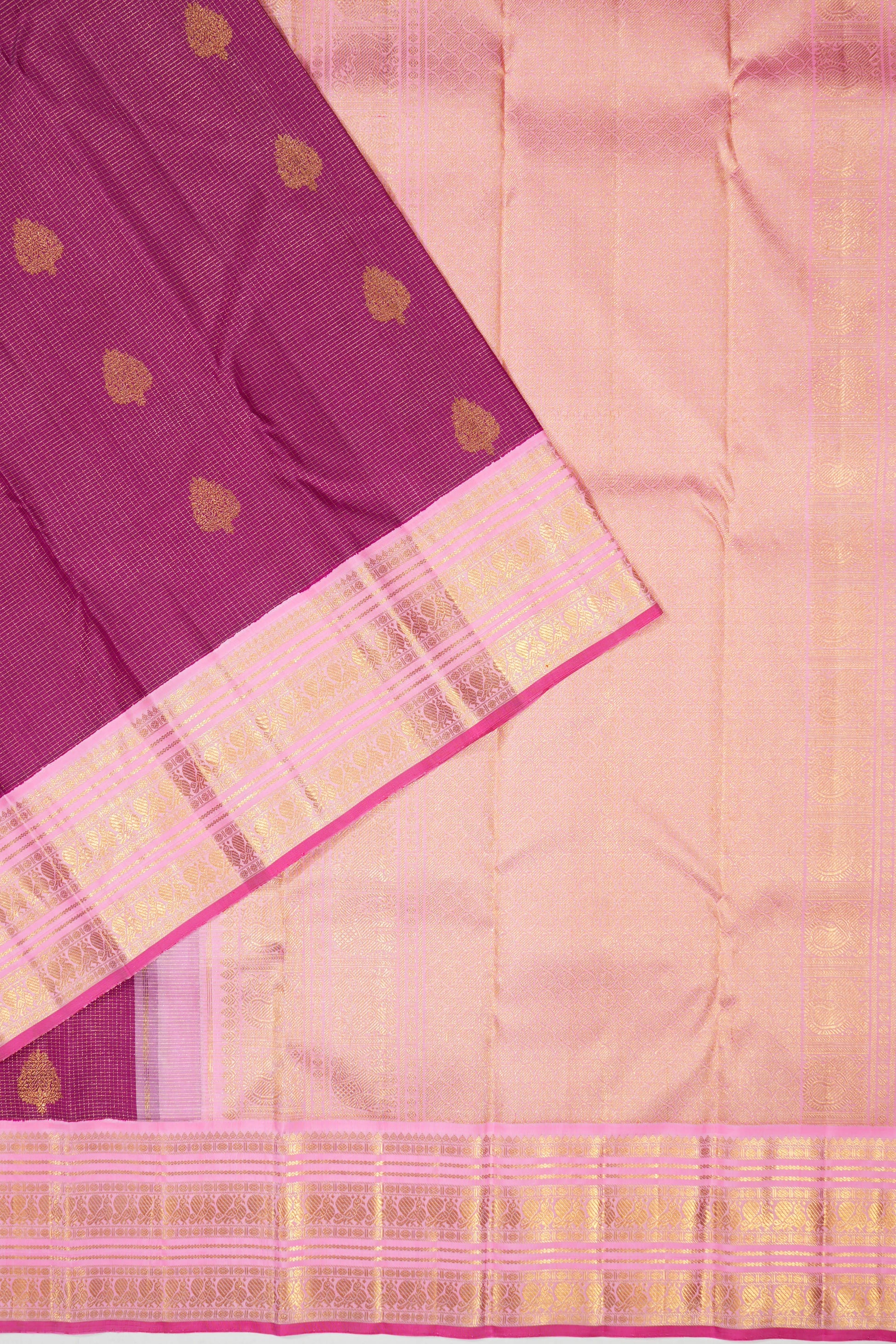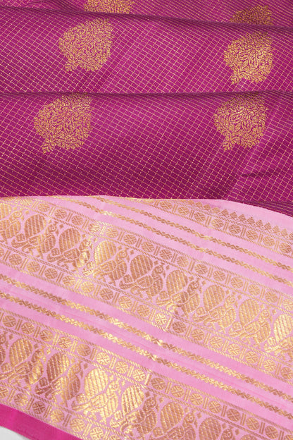 Kanchipuram Silk Checks And Butta Purple Saree