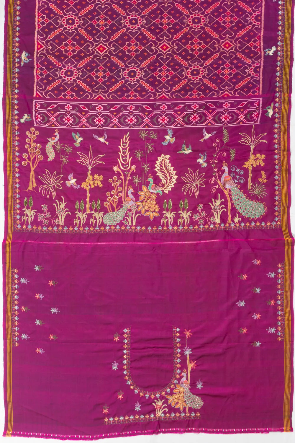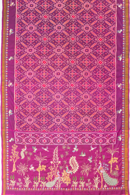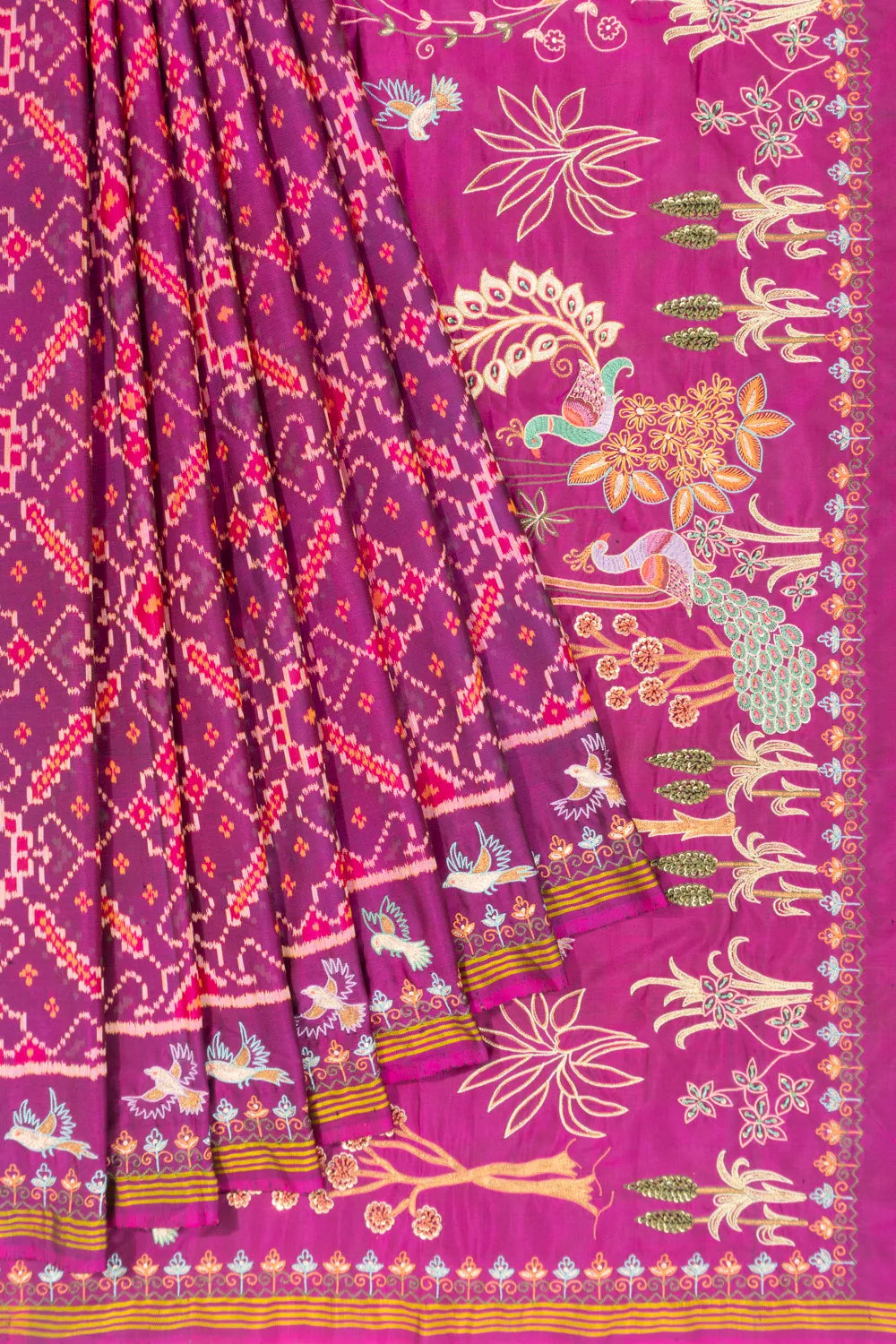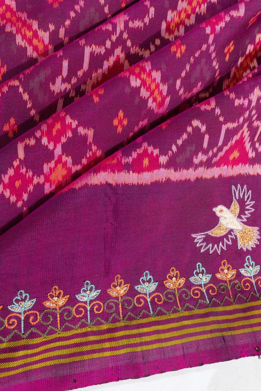 Pochampally Silk Ikat Purple Saree With Embroidery Border