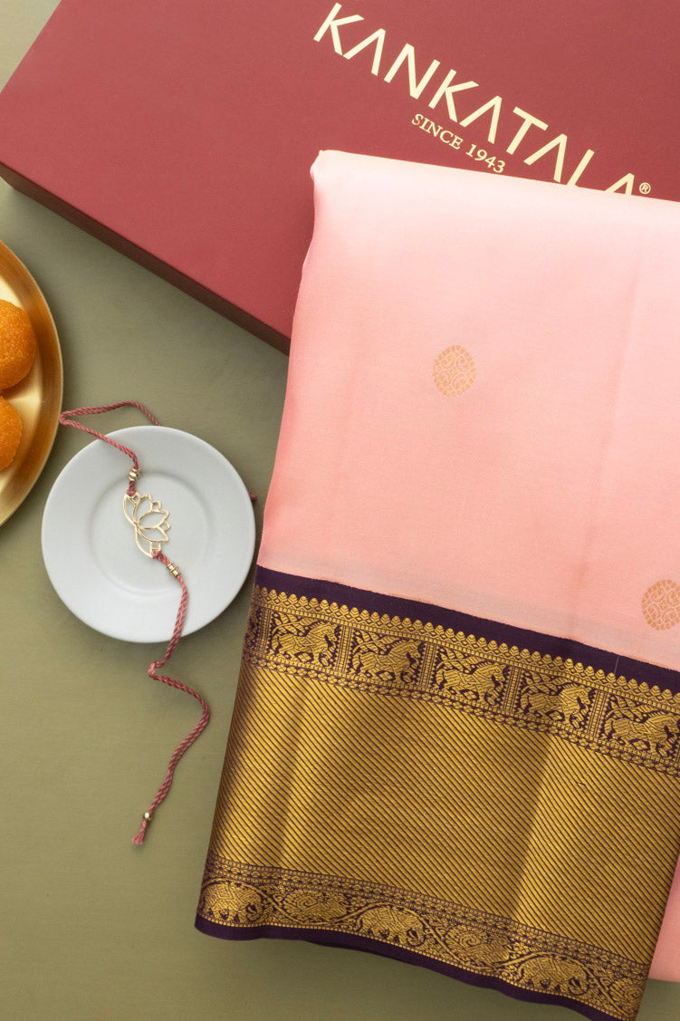 - Banarasi Silk Katan Butta Lilac Saree with Rakhi and Gift Box
