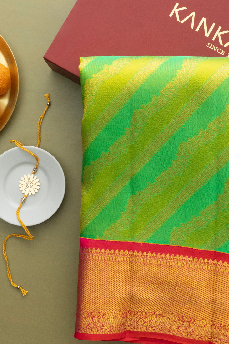 - Kanchipuram Silk Brocade Green Saree with Rakhi and Gift Box