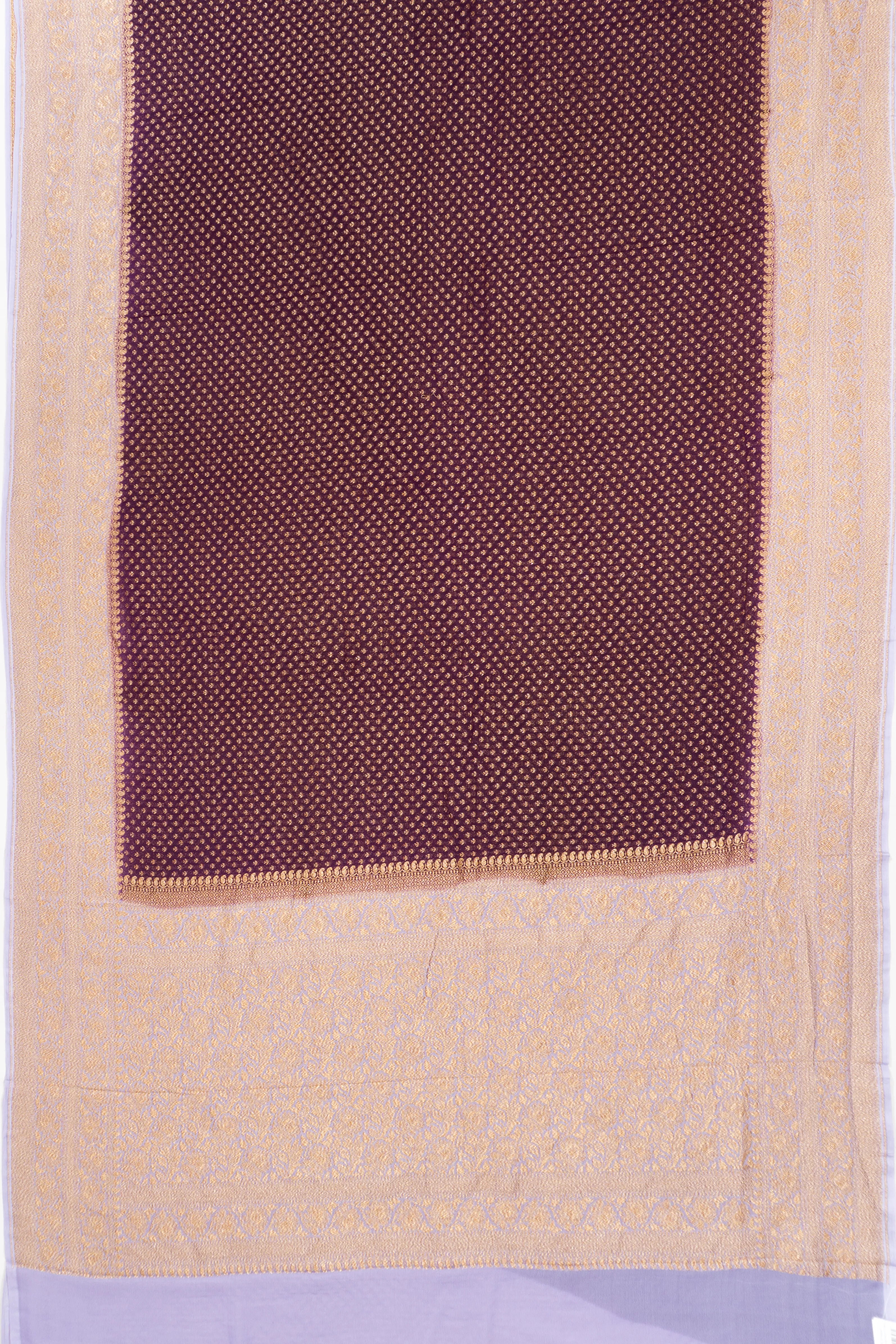 Paired with a plain lavender blouse, this saree ensemble offers a seamless blend of colors and textures, making it an ideal choice for those who cherish refined craftsmanship and enduring style in every drape