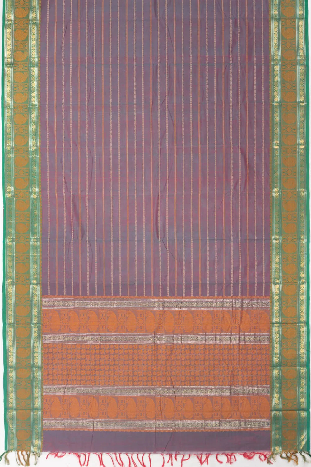 Chettinad Cotton Horizontal Lines Lilac Saree