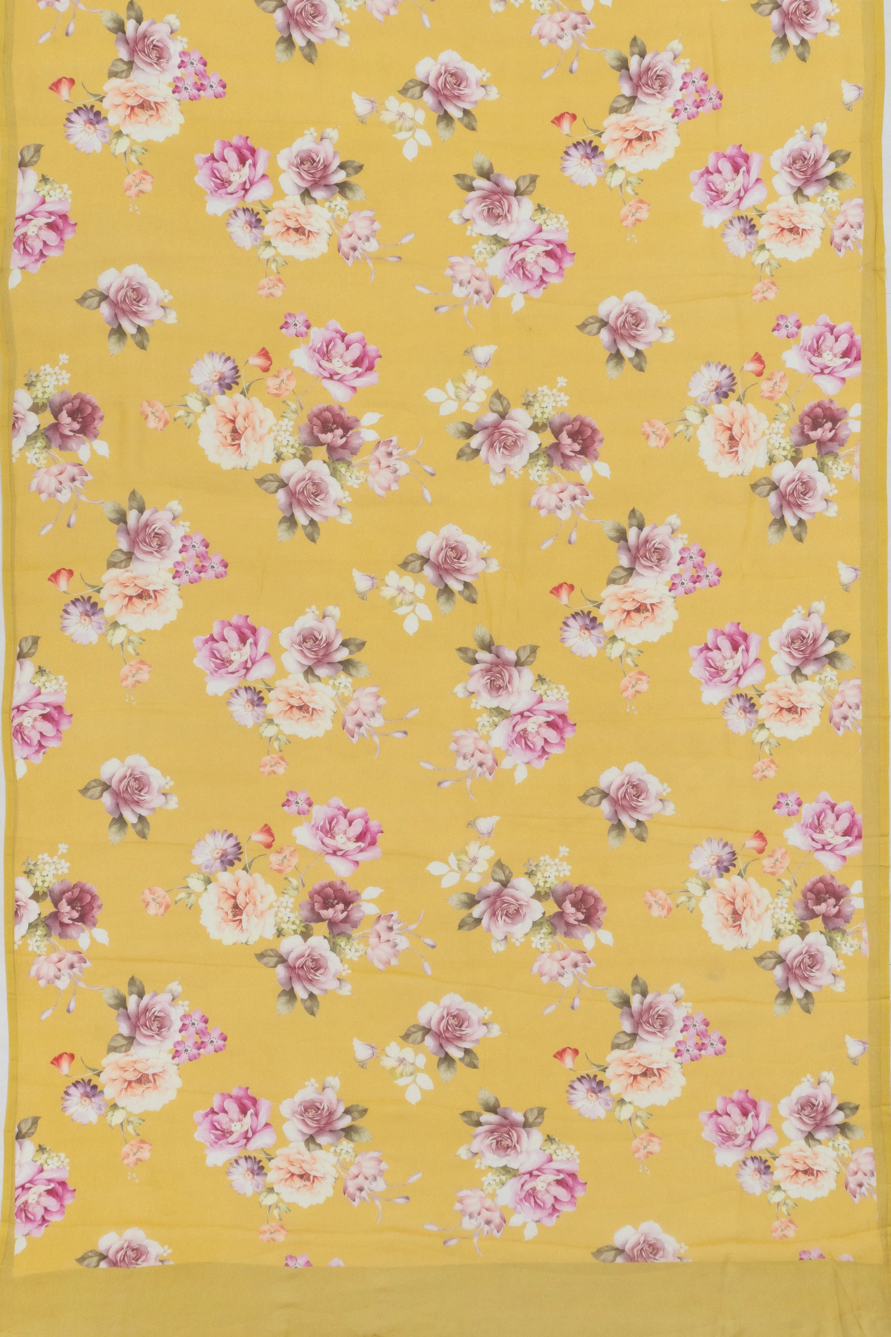 The saree includes a self floral printed pallu, seamlessly blending with the main design to create a harmonious flow of blooms