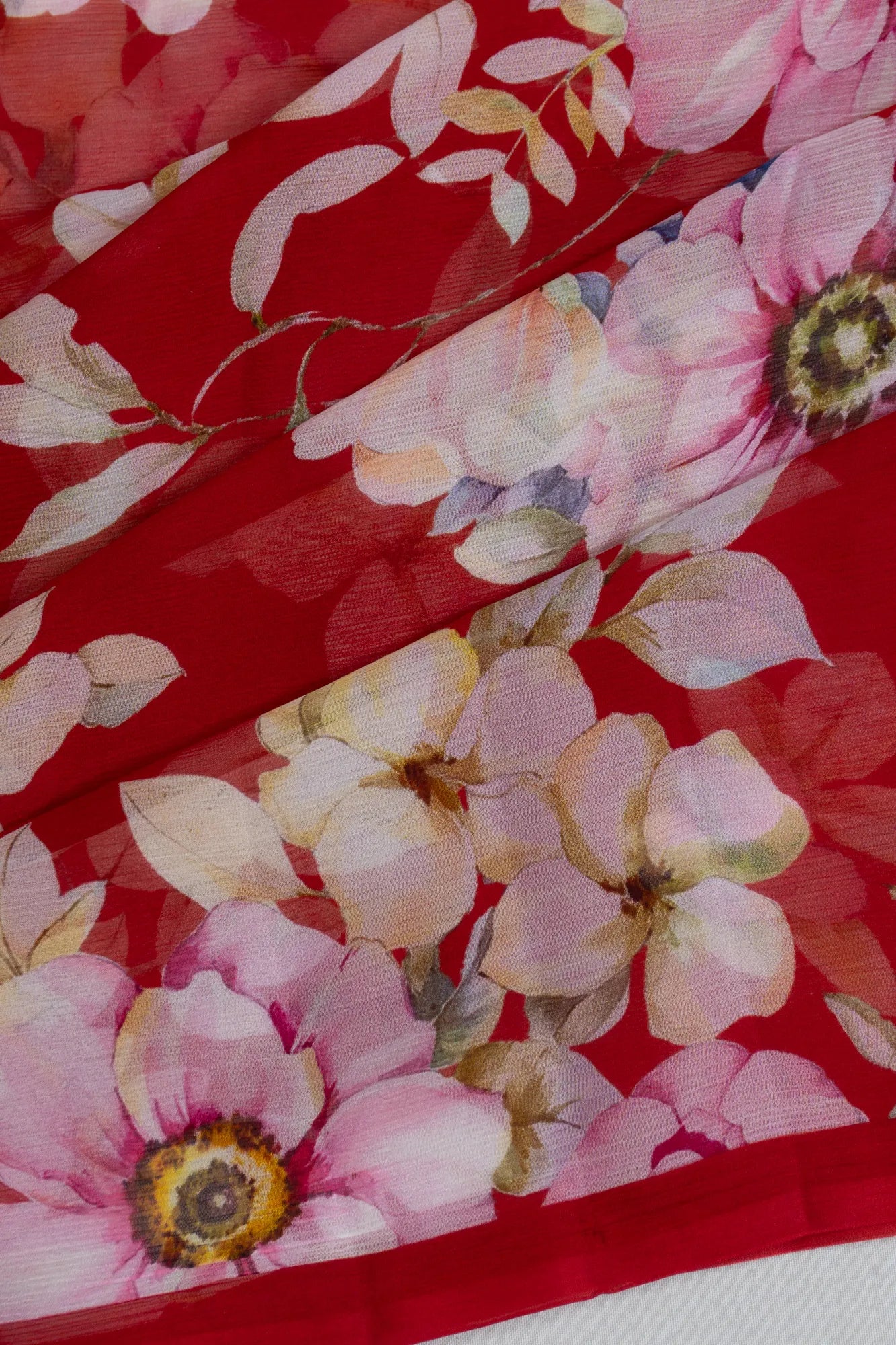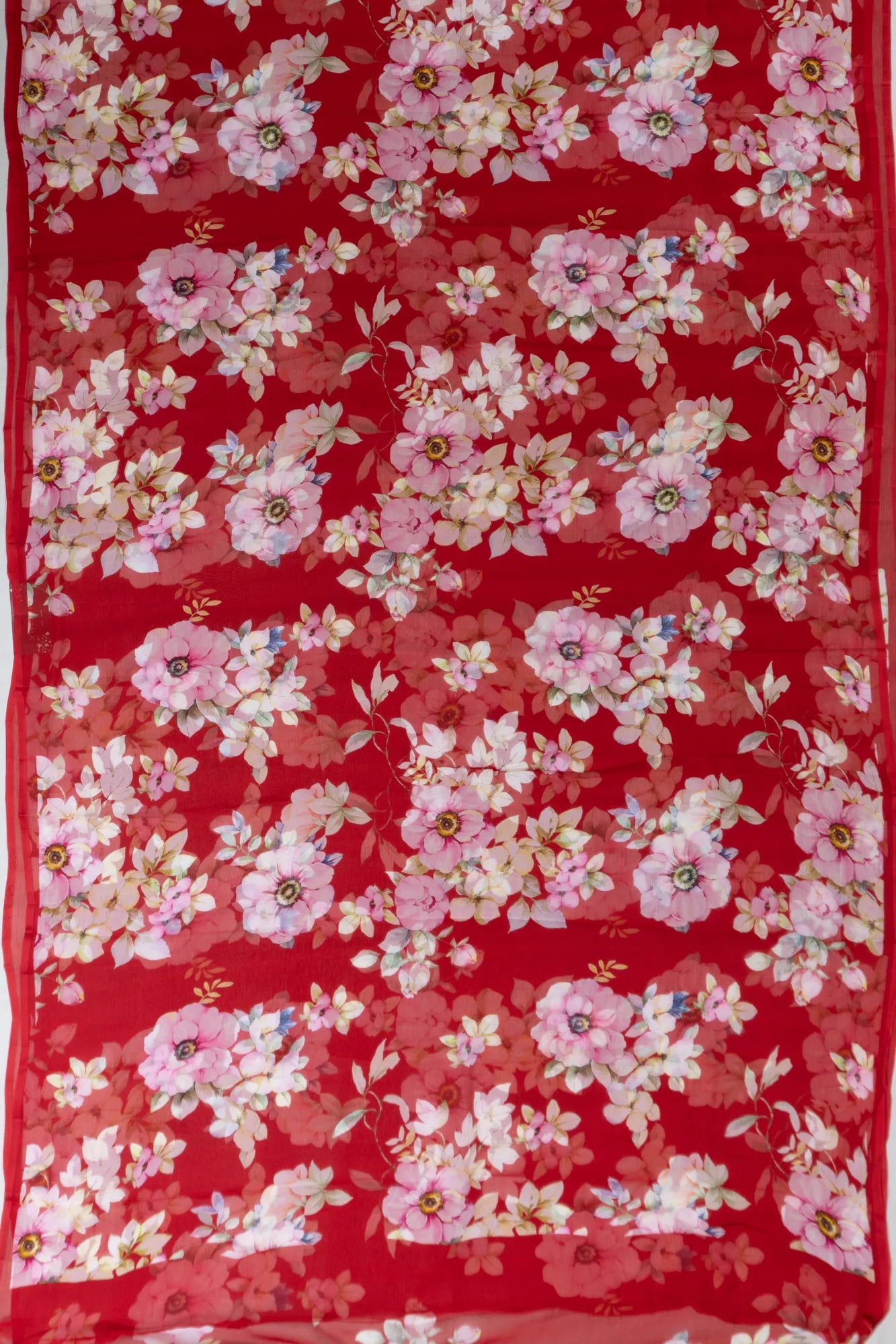 The vivid red hue enhances the floral motifs, creating a captivating visual appeal