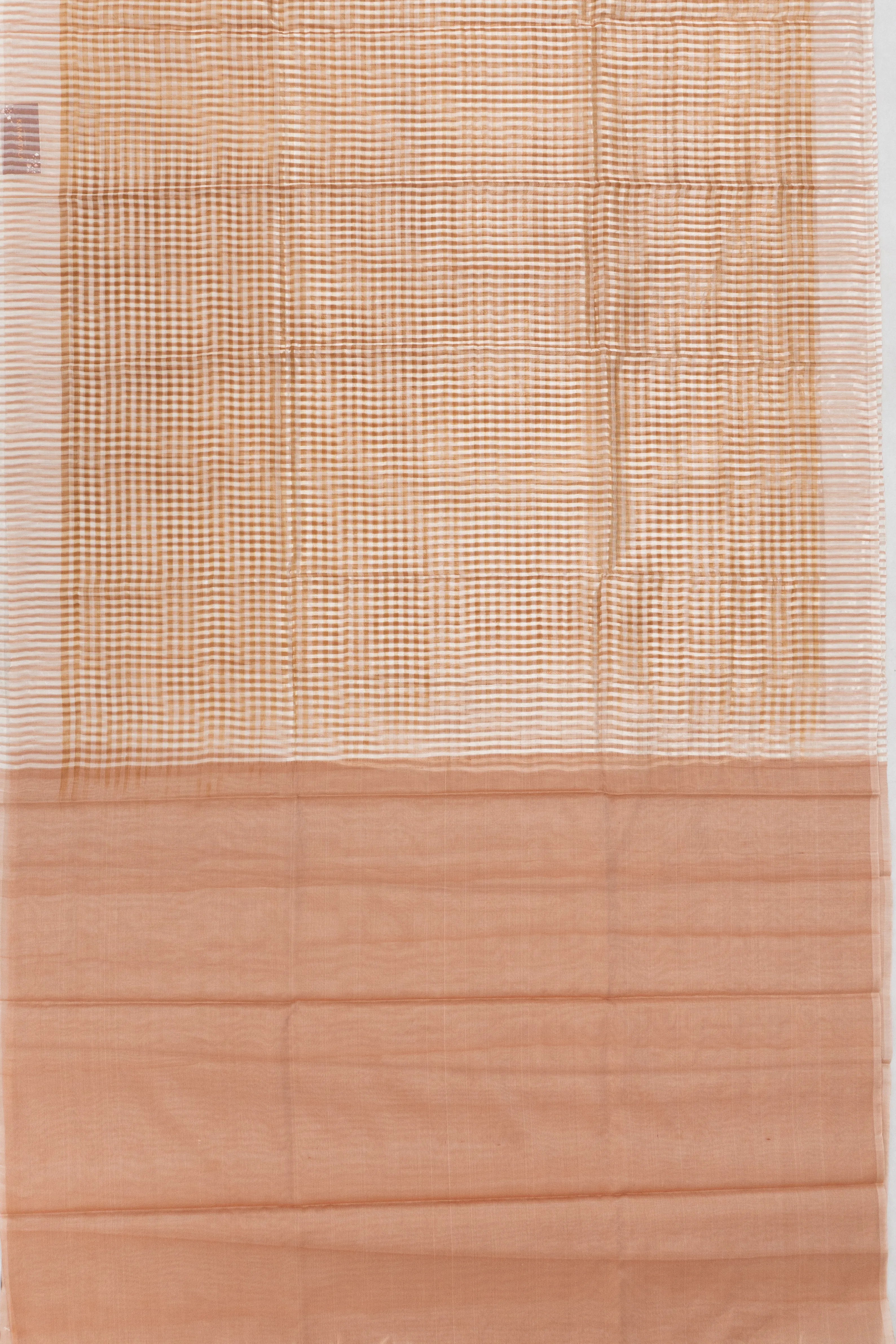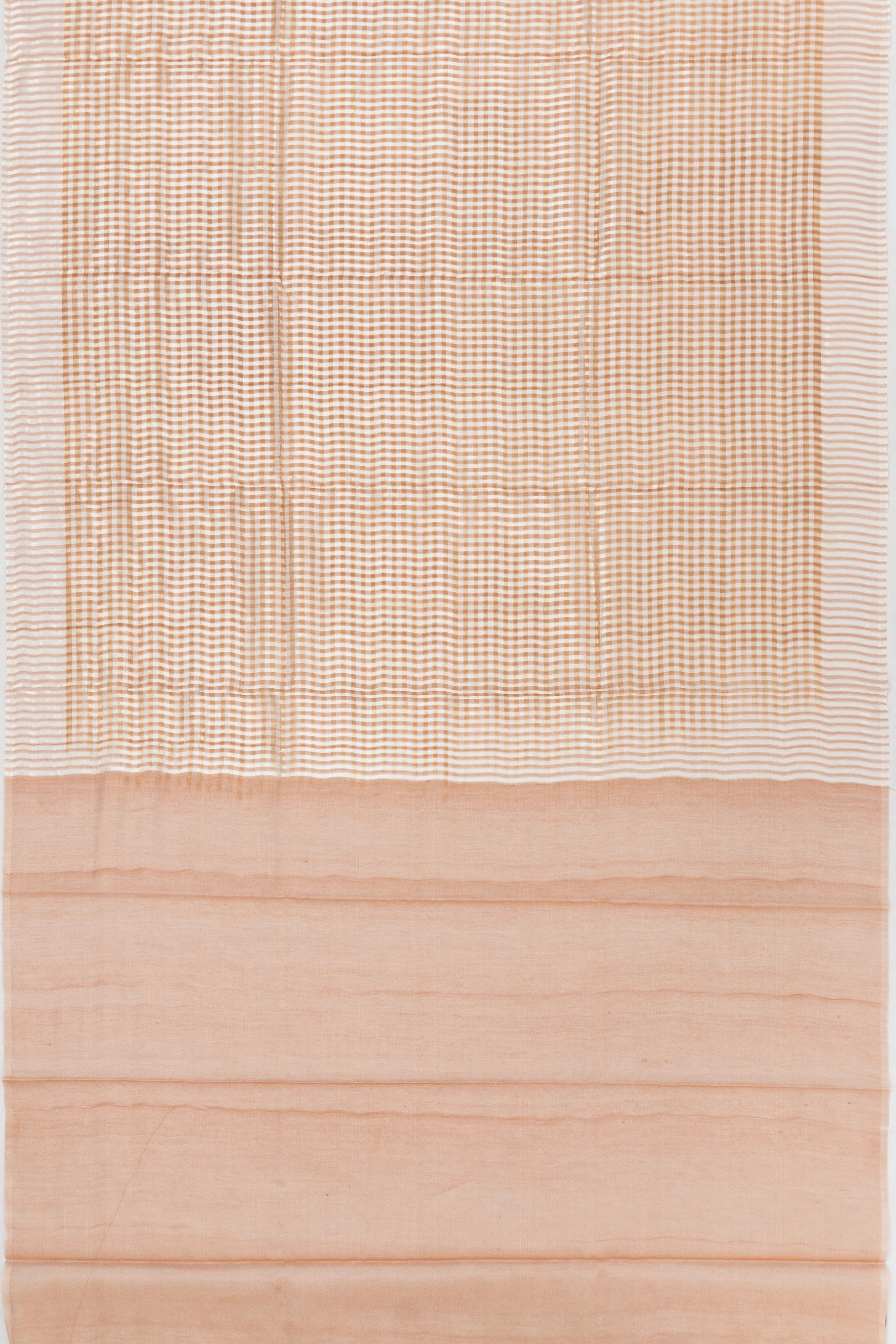 The saree's body, adorned with classic checks, captures a sense of graceful elegance, while the subtle sea green plain border adds a touch of serene sophistication