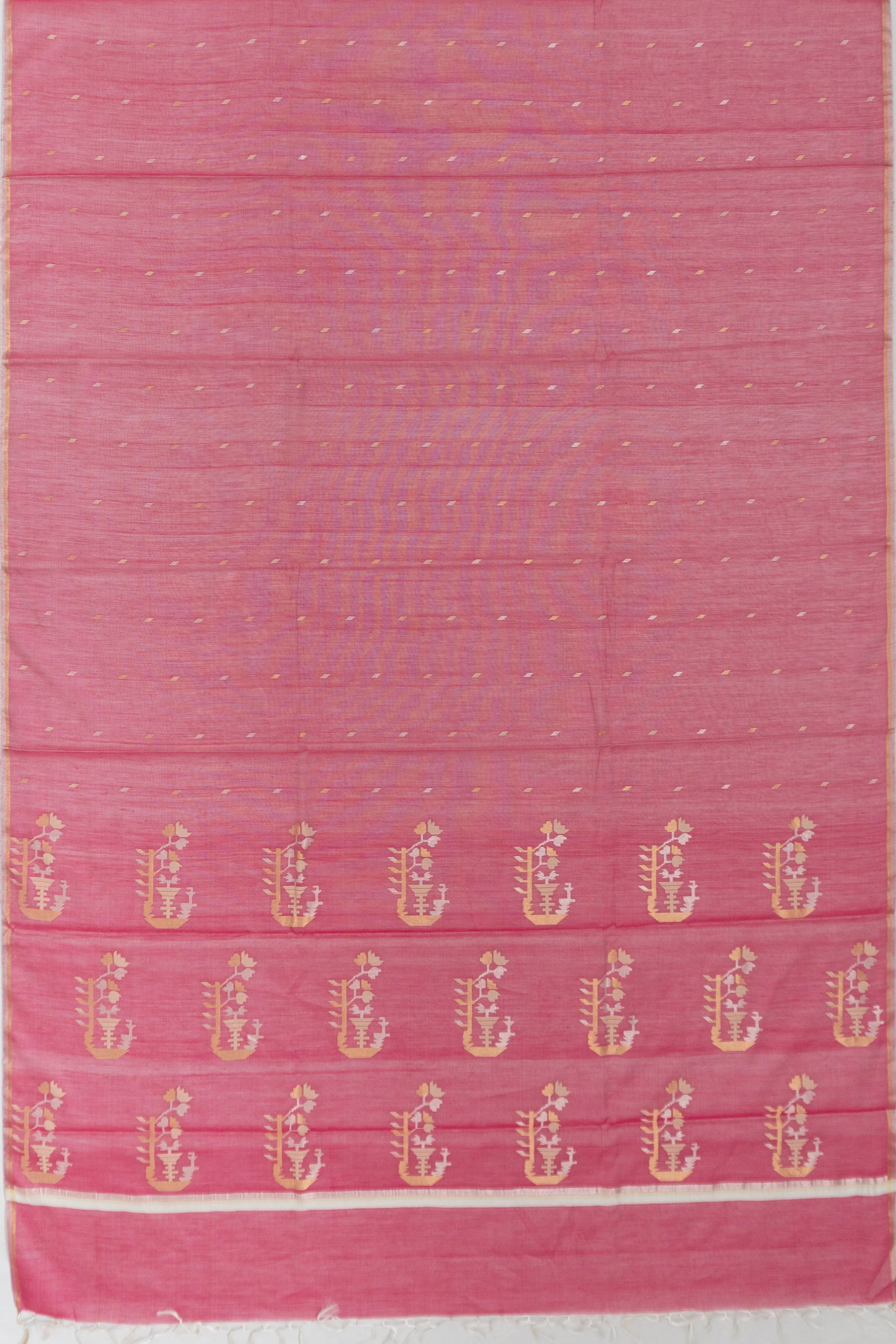 Cotton By Tussar Butta Pink Saree