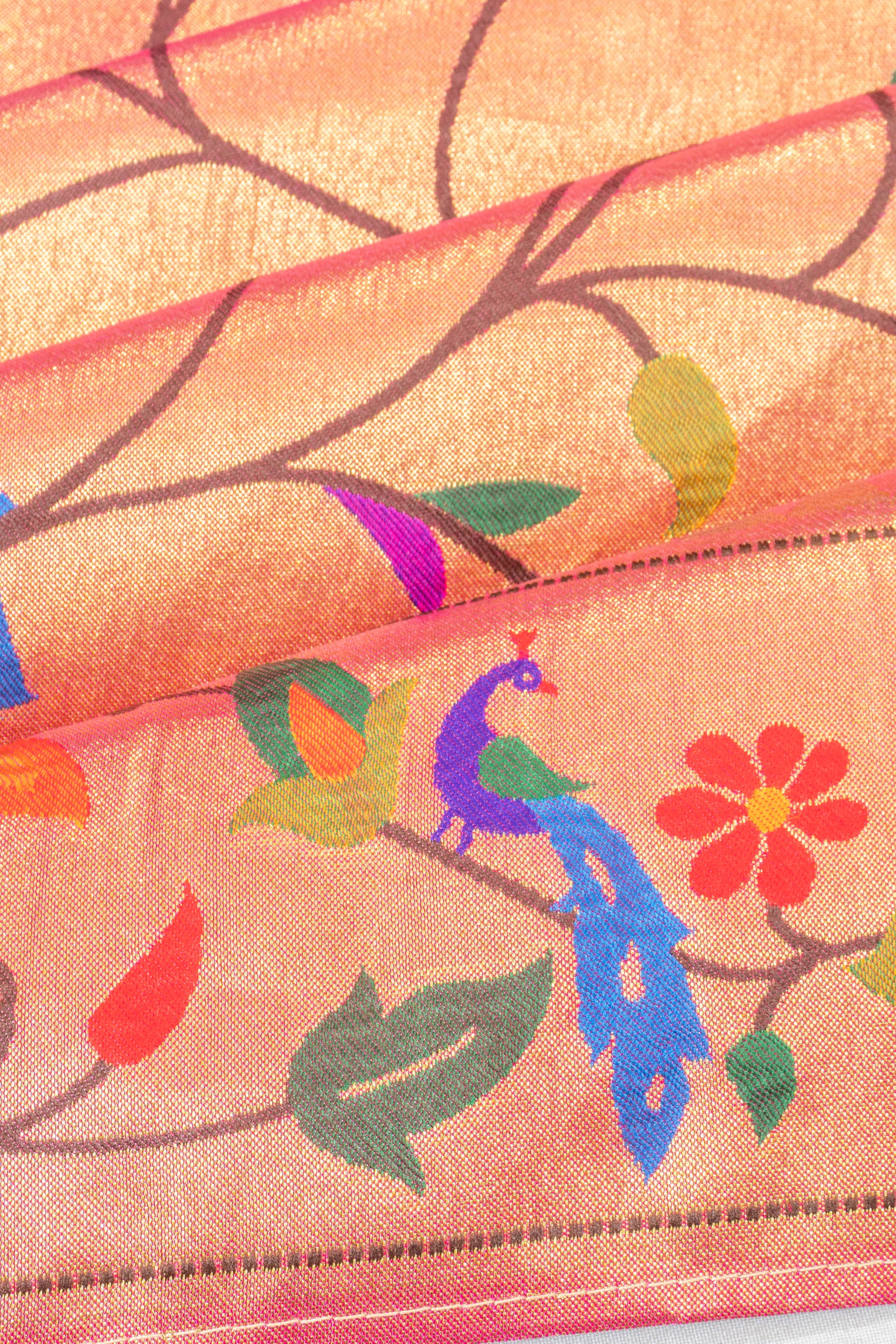 Paired with a coordinated tissue plain blouse, this saree promises to envelop you in a rich tapestry of heritage and elegance