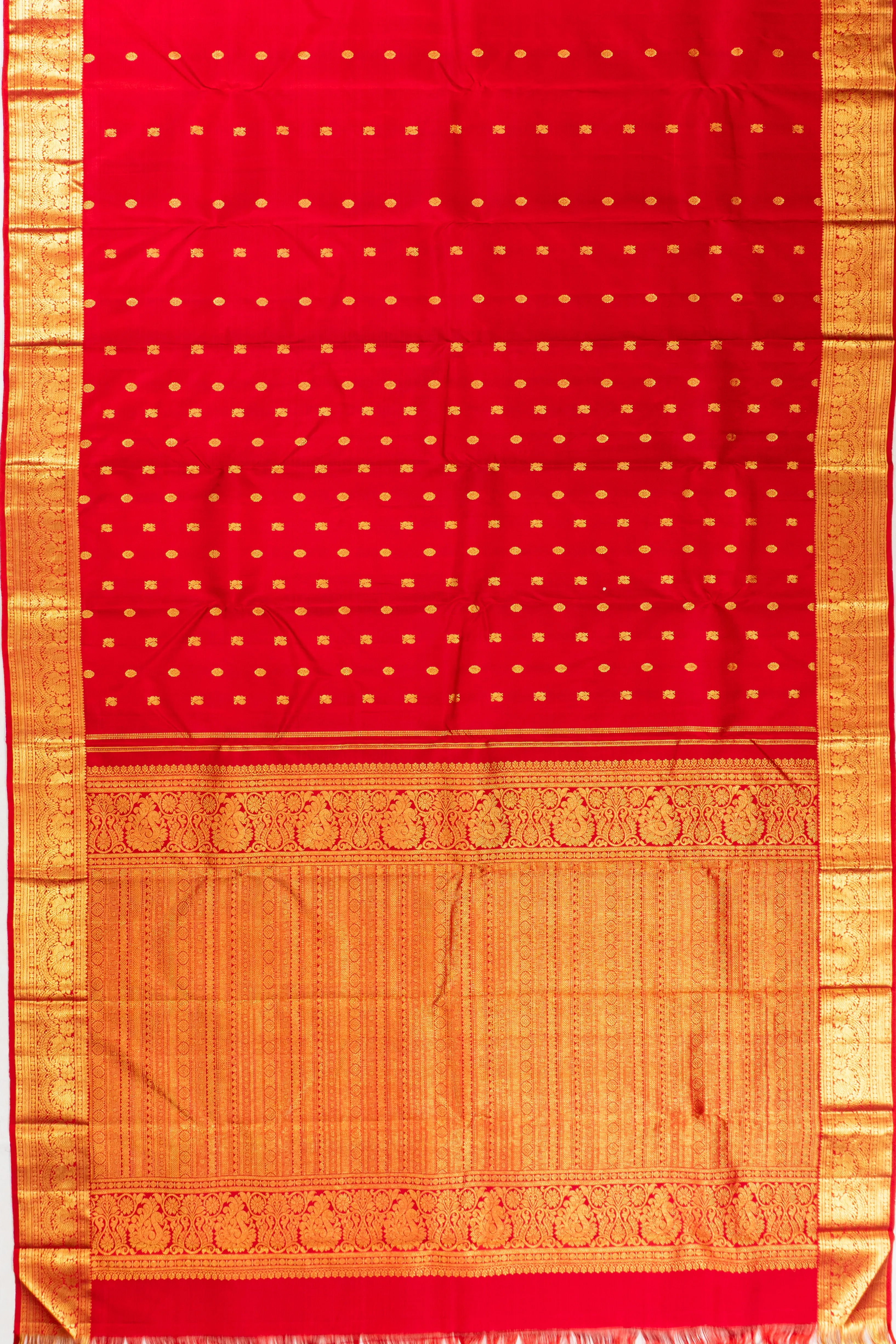 Crafted in luxurious silk, this saree offers a timeless grace that effortlessly complements its rich, traditional motifs and vibrant red hue
