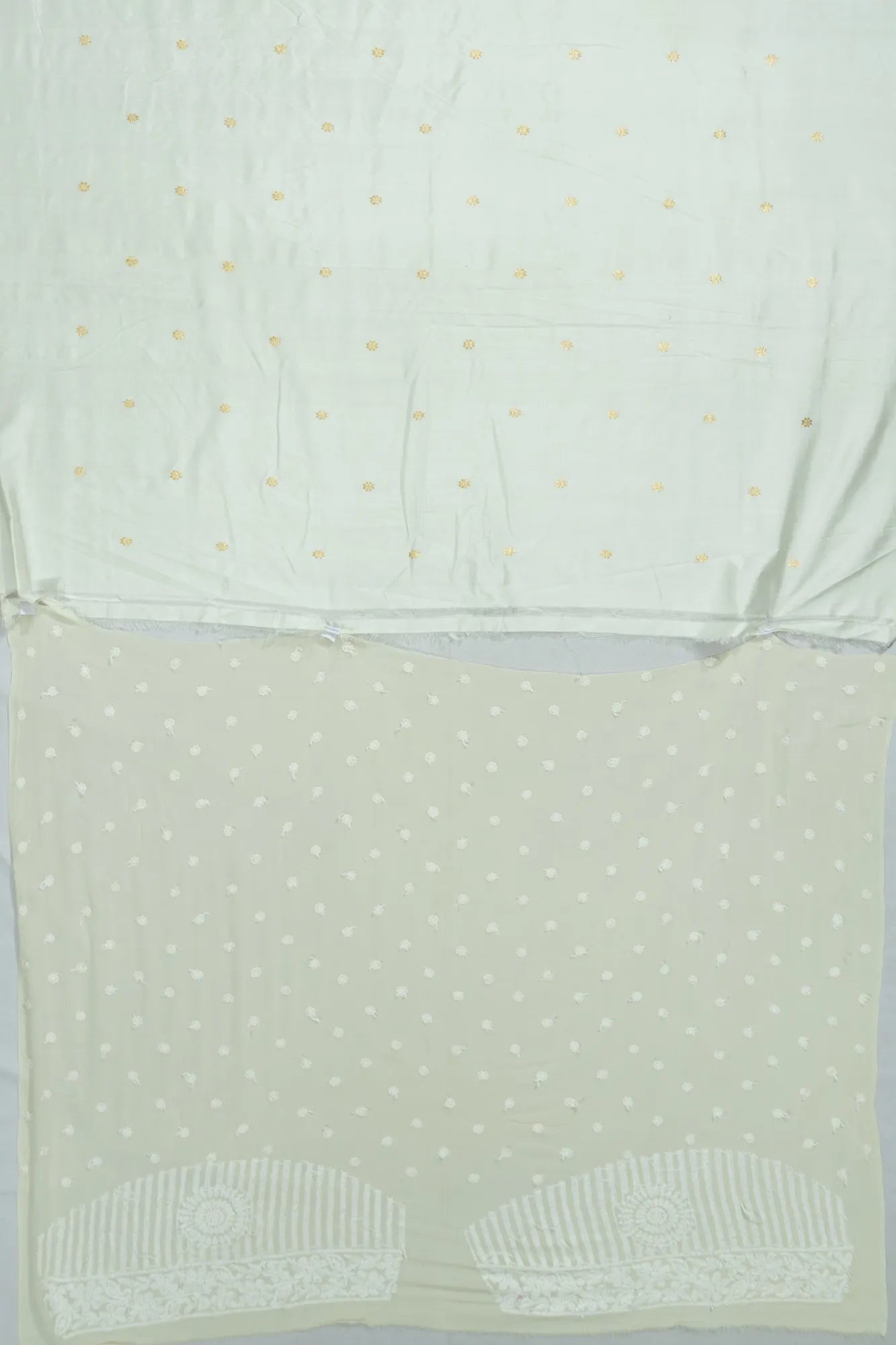 Banarasi X Chikankari Georgette All Over Embroidery Off White Saree
