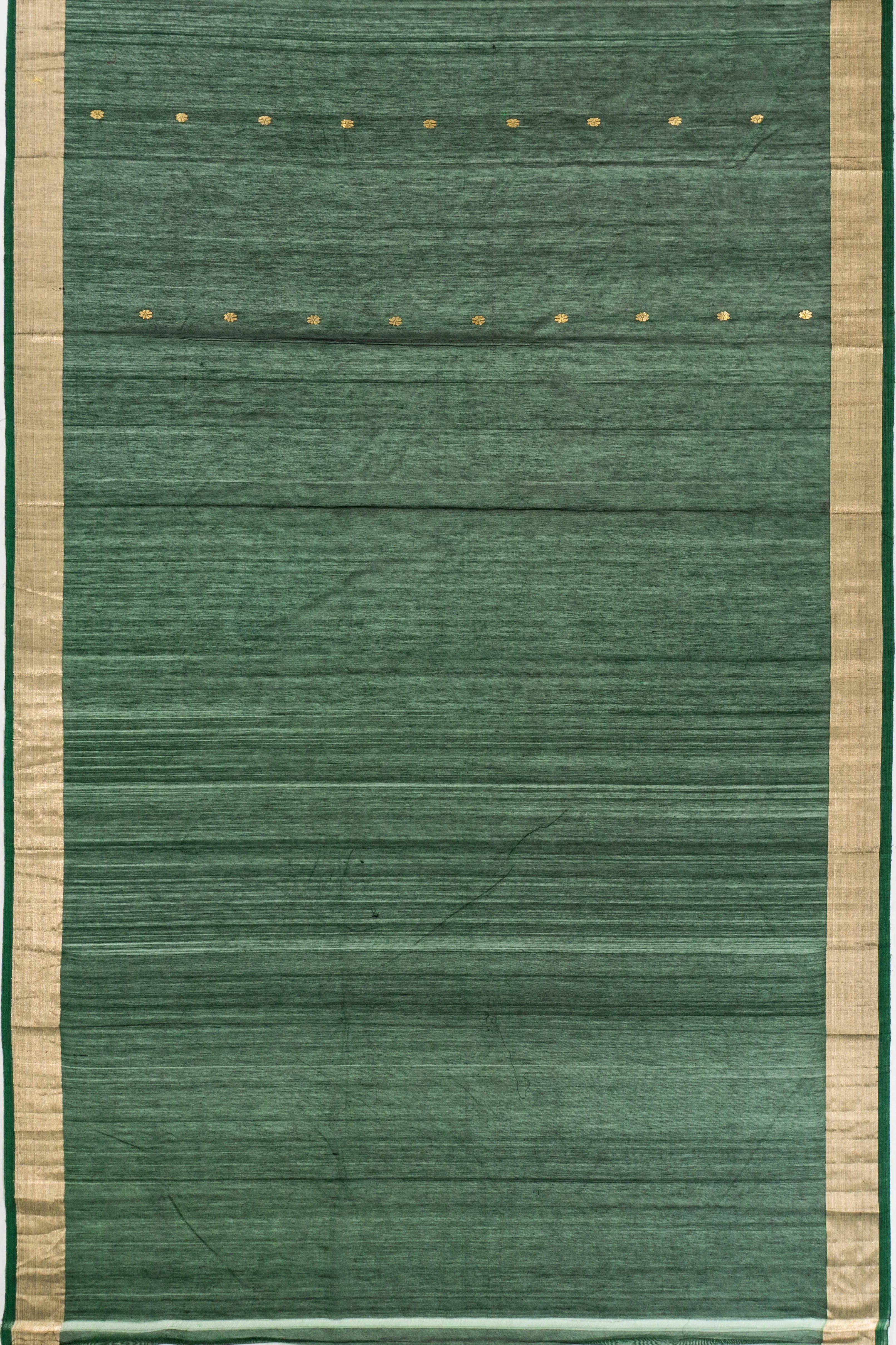 This exquisite piece features gold zari floral buttas that dance across the rich bottle green body, creating a timeless charm