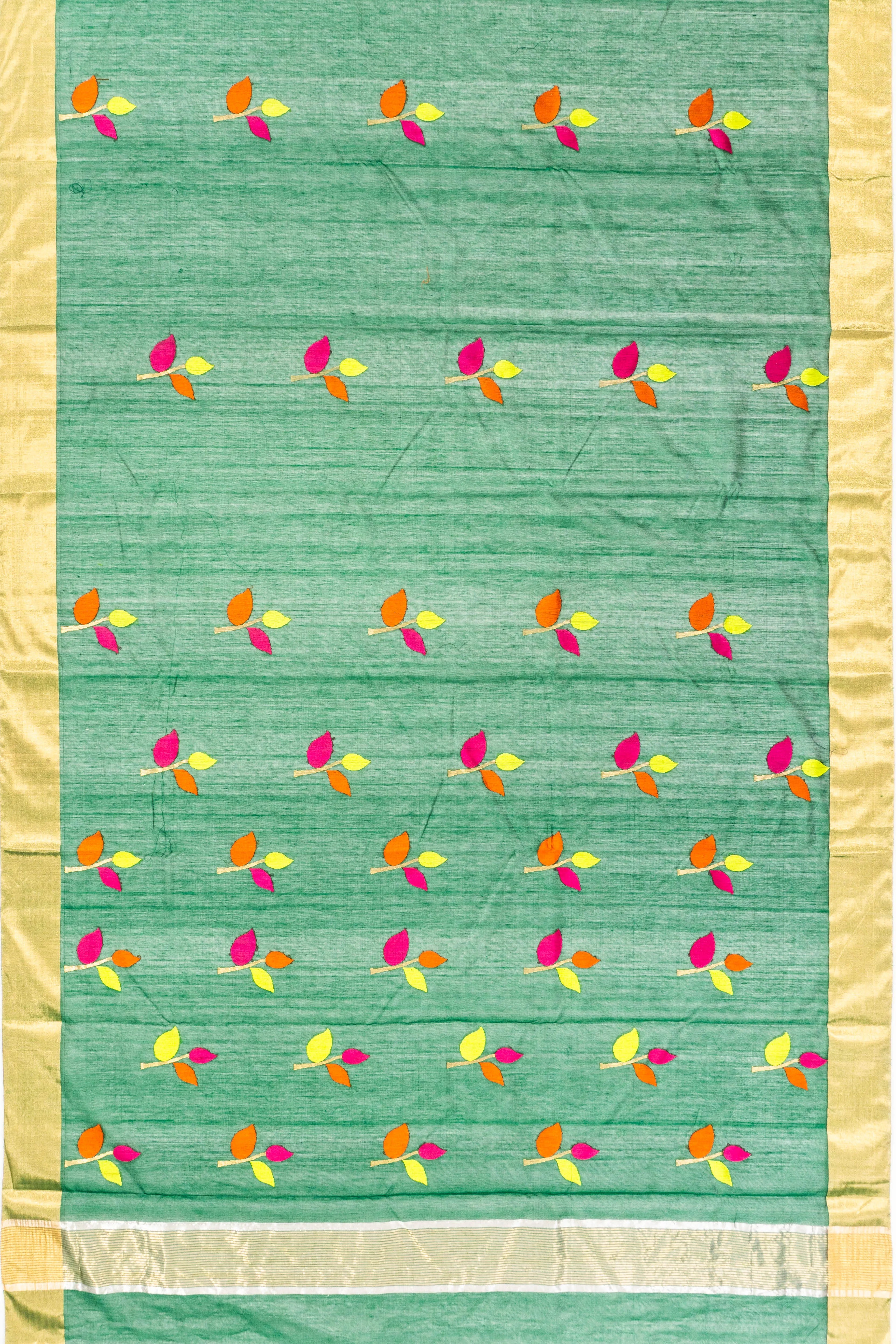 Chanderi Silk Butta Dark Green Saree