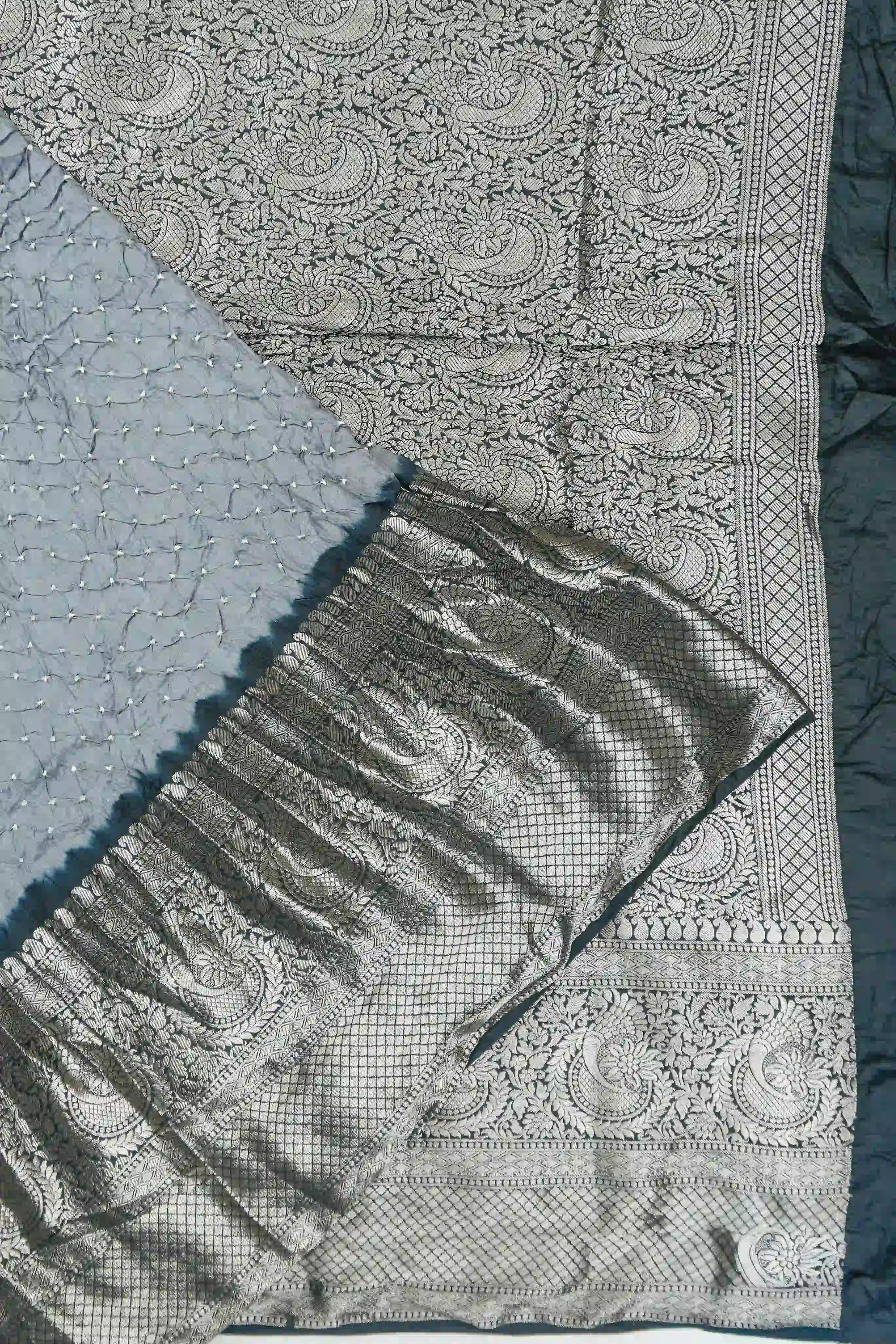 Gaji Silk Bandhani Grey Saree