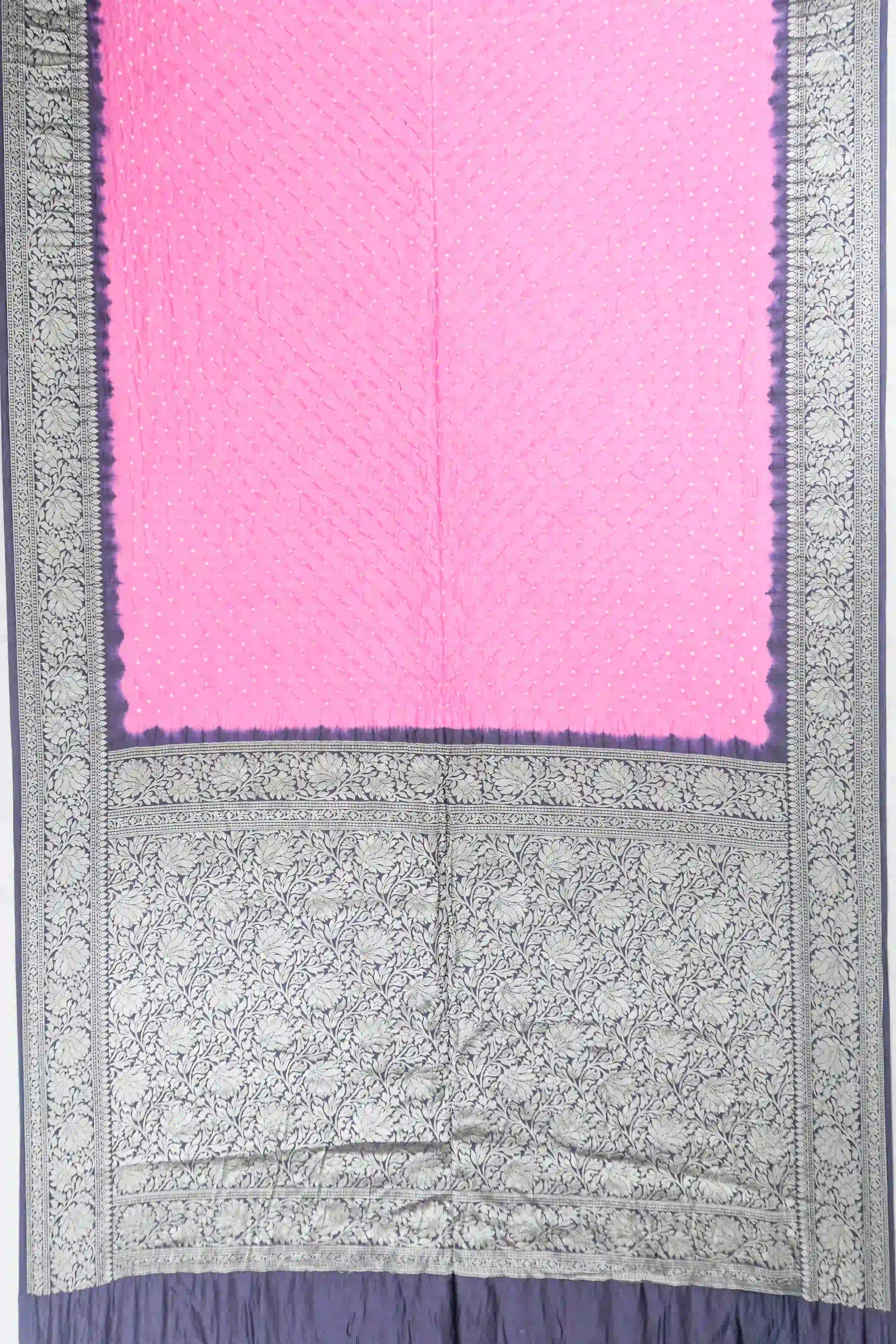 Gaji Silk Bandhani Pink Saree