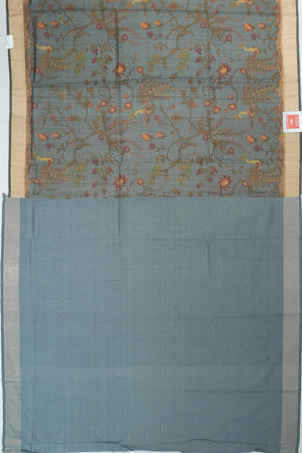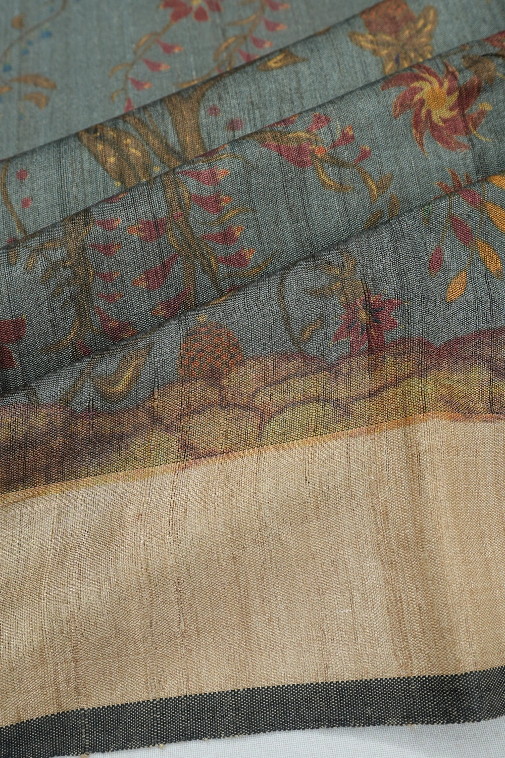 Tussar Floral Printed Grey Saree