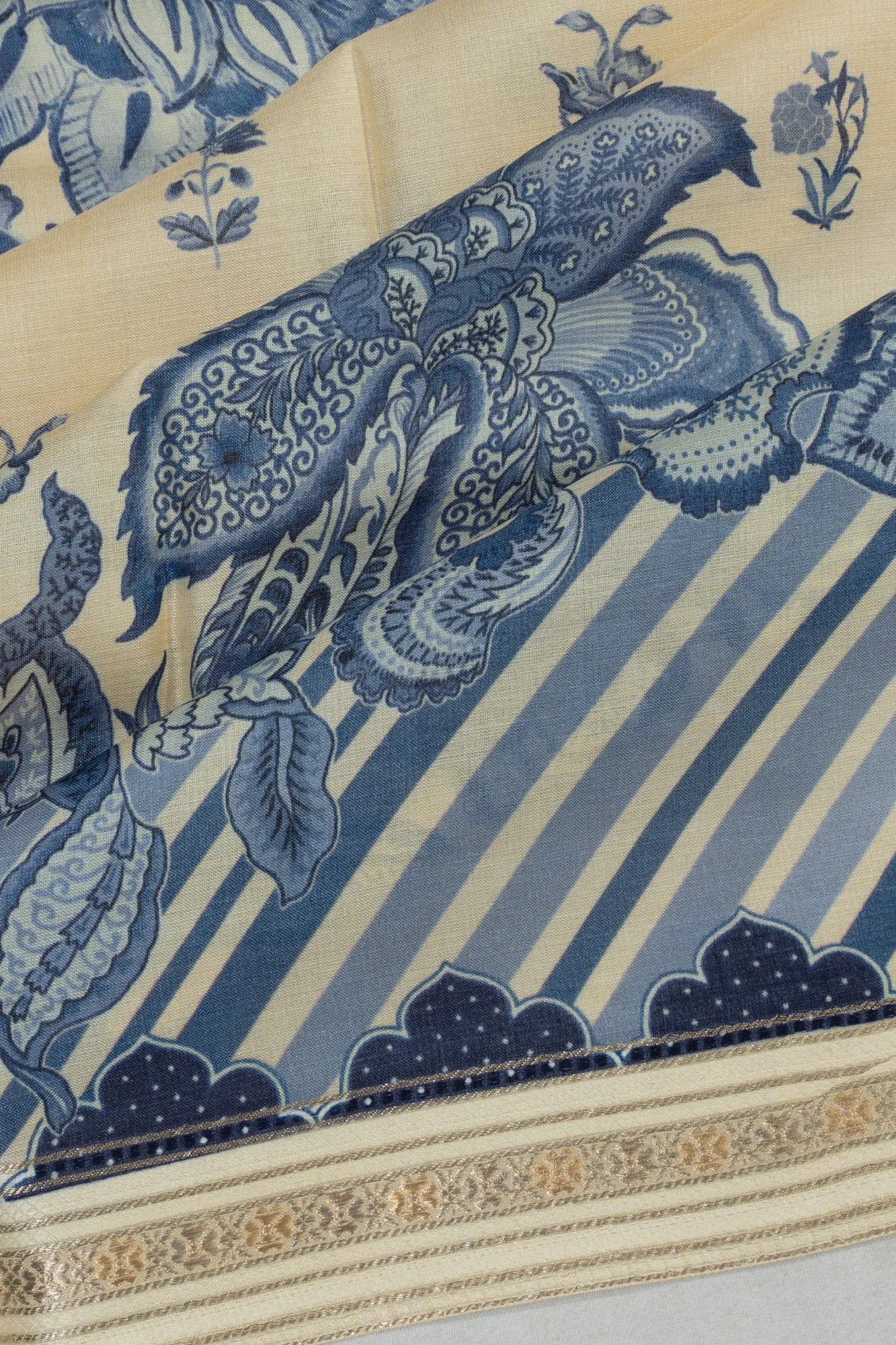 Embrace the grace of tradition with our Tussar Floral Printed White Saree, a beautiful blend of heritage and elegance The saree is adorned with intricate floral prints that dance across its soft silk canvas, offering a serene and timeless appeal