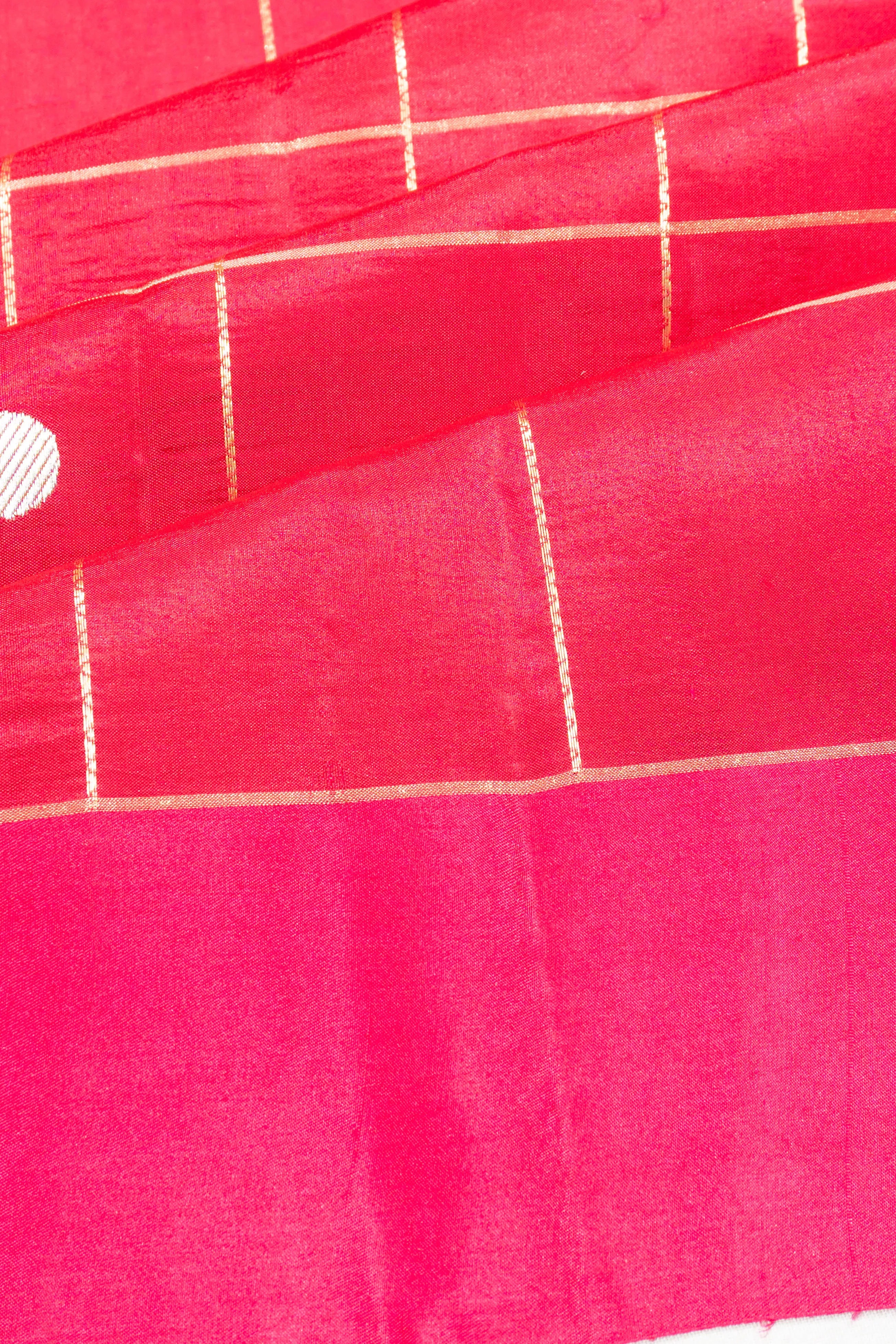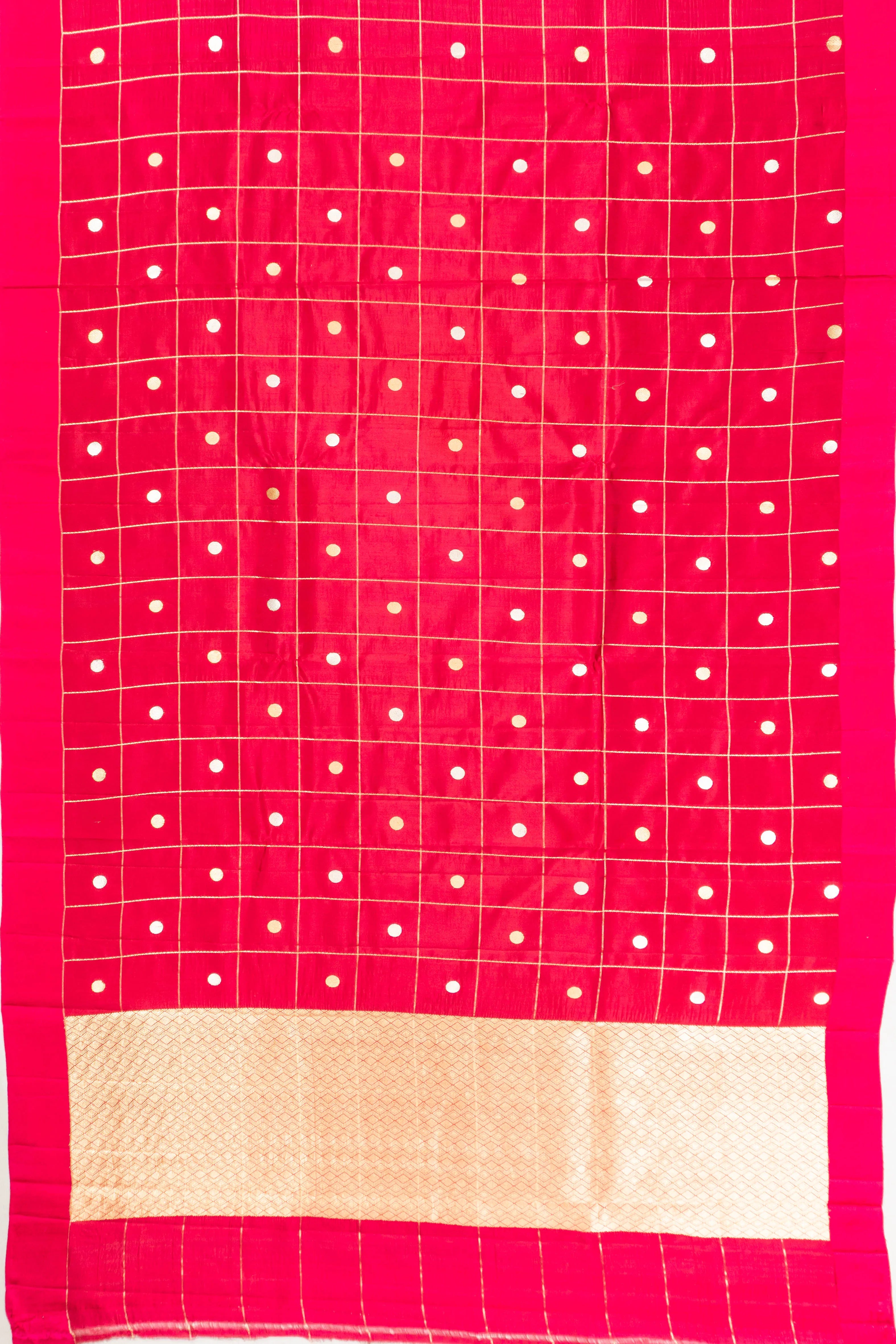 Banarasi Poona Silk Checks And Butta Red Saree