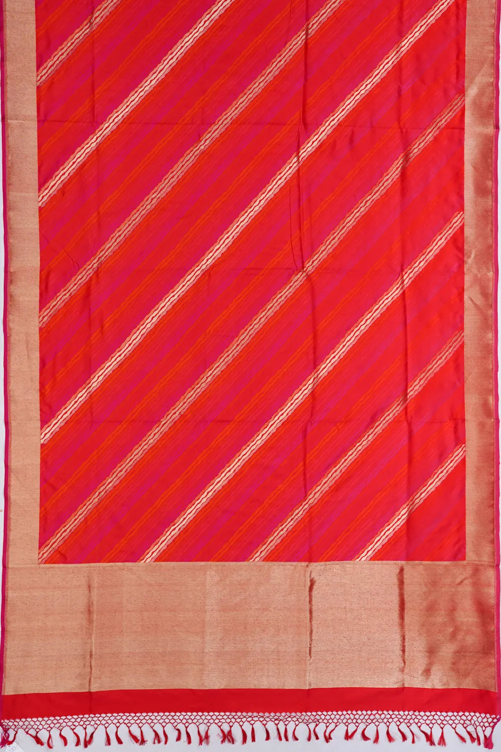 The saree is complemented by a richly detailed pallu, woven with intricate zari motifs that exude heritage charm