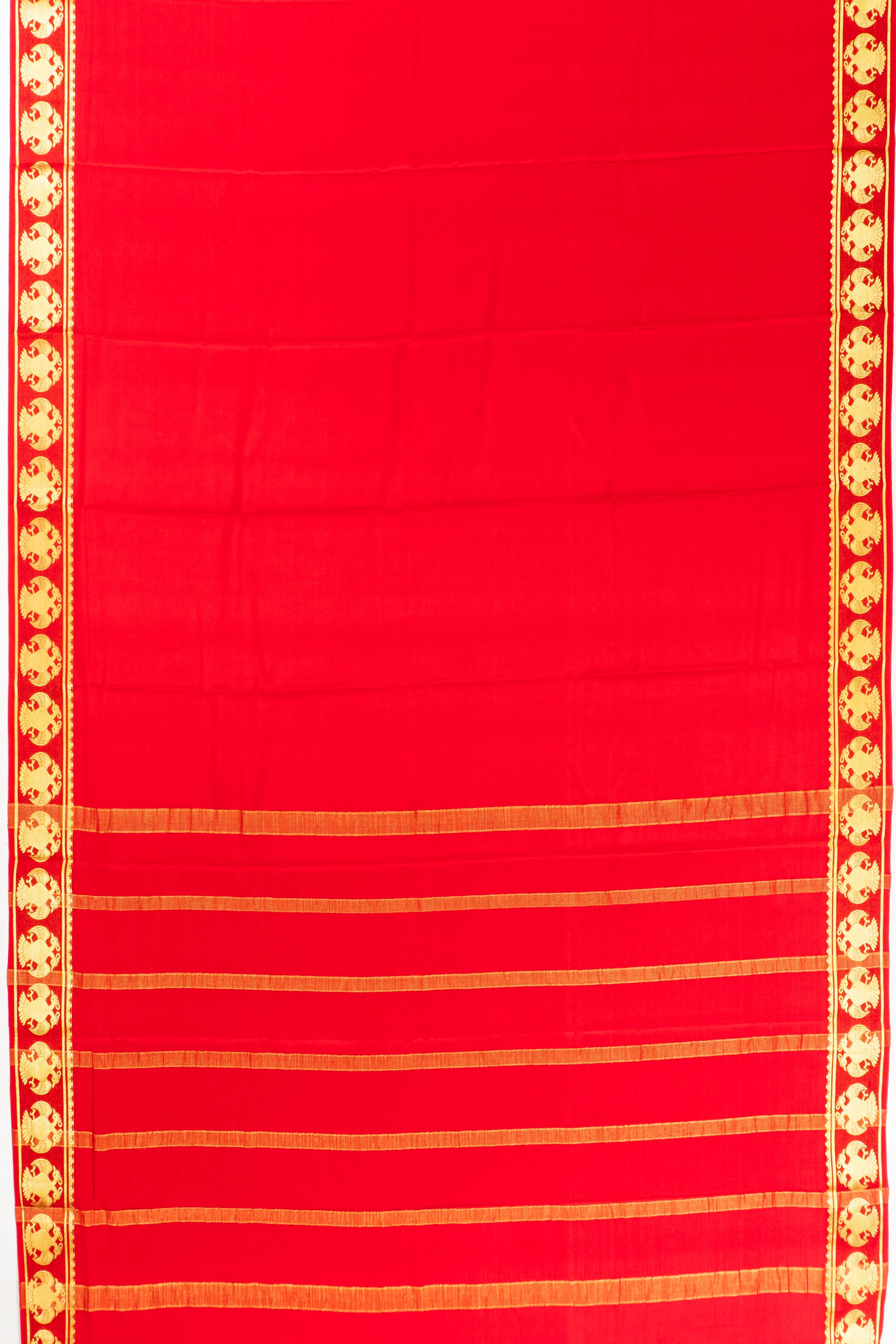 Binny Silk Plain Red Saree With Gandabherunda Border