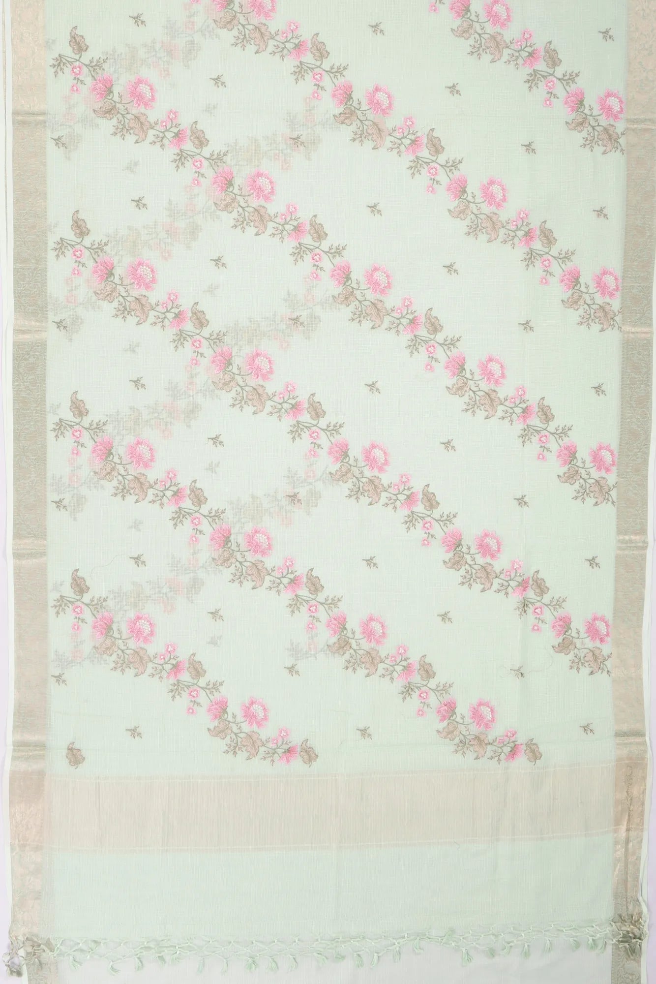 Kota Soft Silk Embroidery Jaal Pastel Green Saree