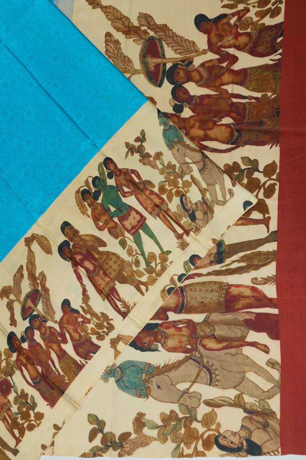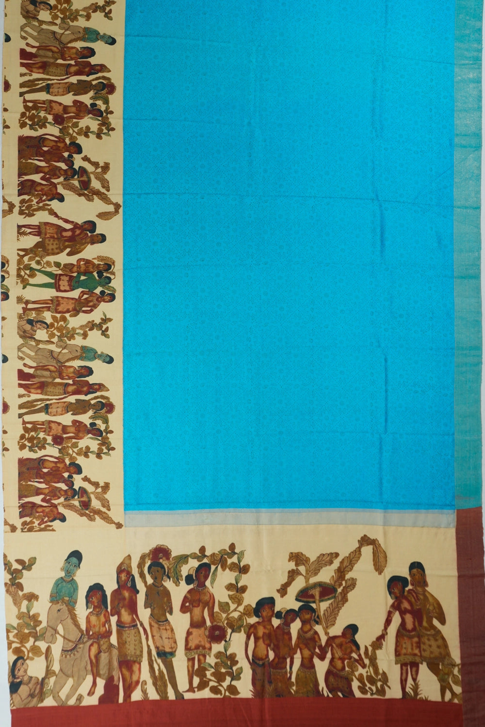 Paired with a plain maroon blouse, this saree creates a harmonious look that speaks of sophisticated style and cultural richness