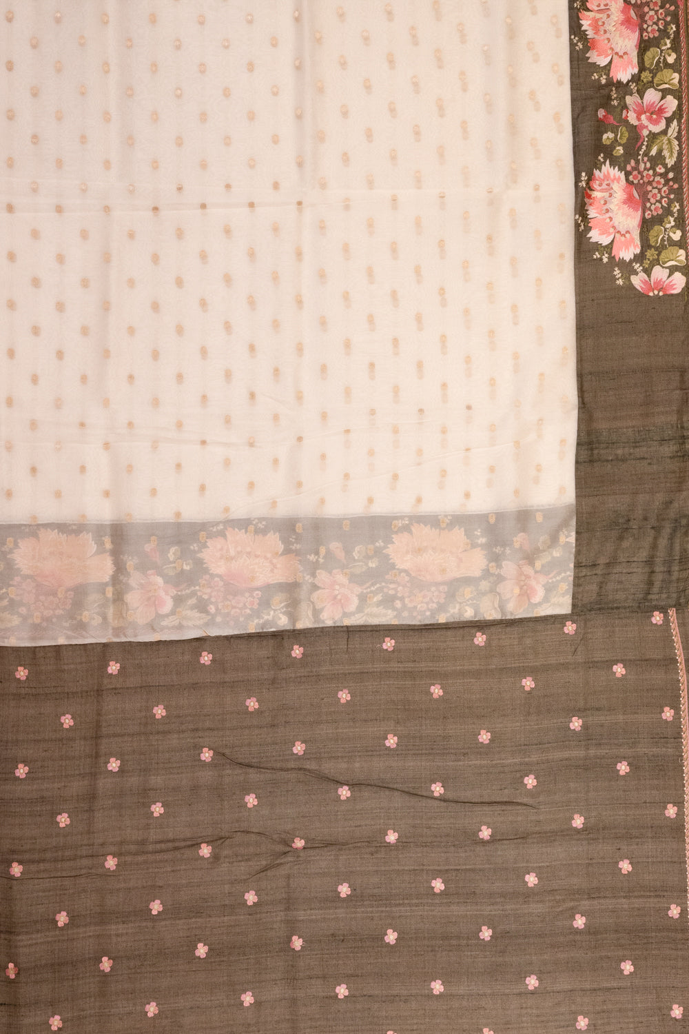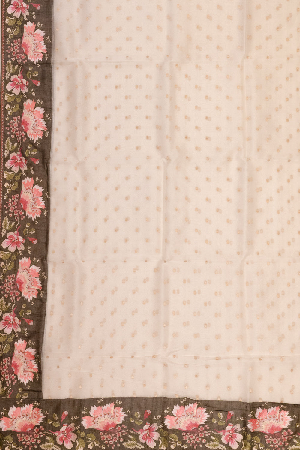 Organza Butta Off White Saree With Tussar Embroidery Border