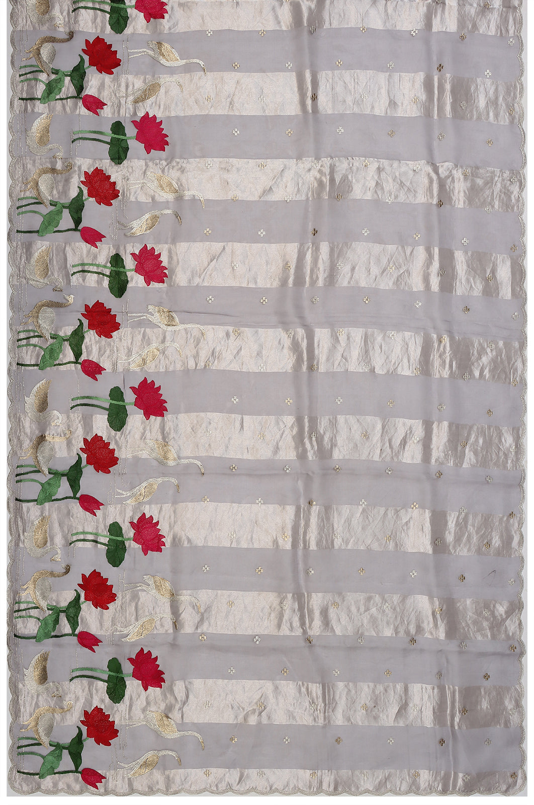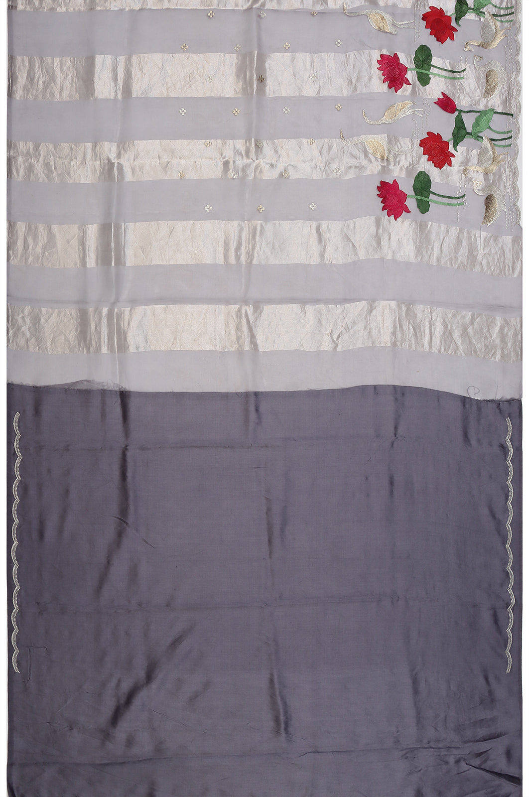 Organza Lines And Butta Grey Saree With Embroidery Border